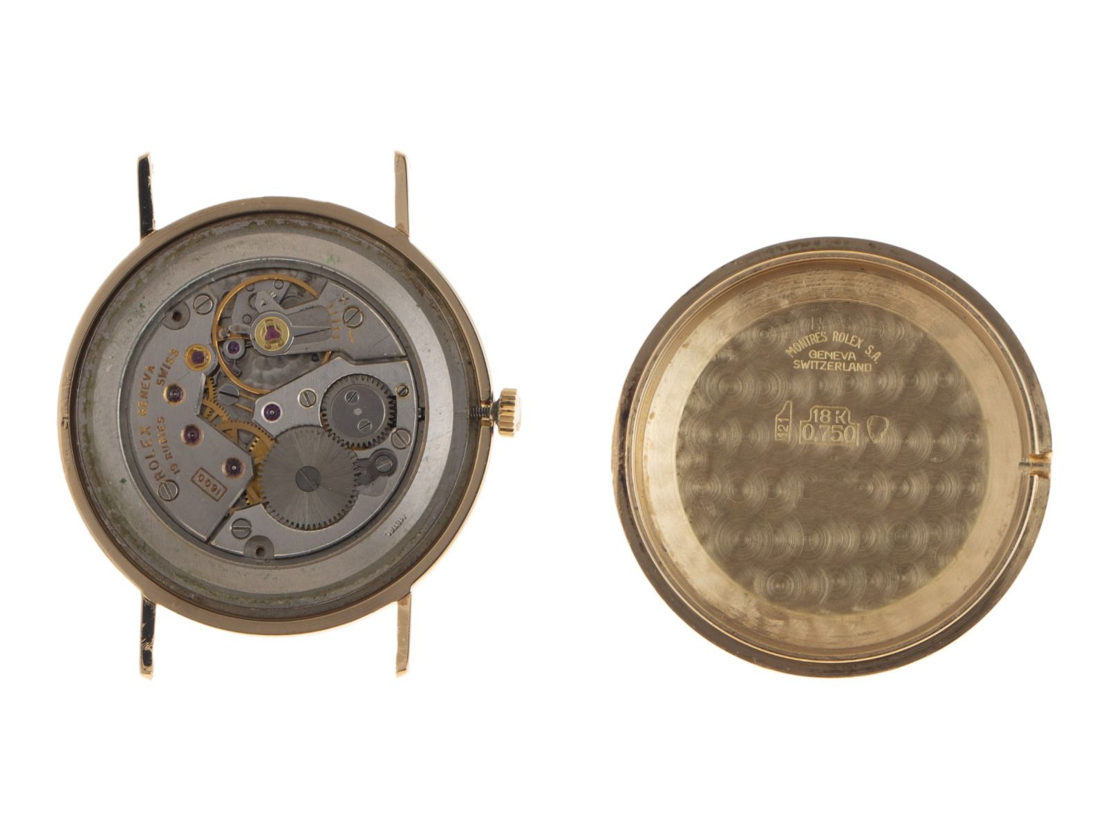 Caja de 18kt Oro Amarillo pulido, diámetro de la caja sin corona 31mm, altura de la caja 5,5mm. Correa de cocodrilo negra de Rolex con costura decorativa, ancho de asa 17mm, hebilla de pin de Rolex de 18kt Oro Amarillo con logo del fabricante. Esfera color champán con números romanos y agujas negras. Movimiento manual, calibre de manufactura Rolex 1600 con 19 piedras preciosas. Indicador de hora y minuto a través de agujas centrales. Cristal de zafiro resistente a los arañazos. Corona con logo del fabricante. Fondo de 18kt Oro Amarillo grabado. Peso del reloj incluyendo la correa 34g. Número de referencia: 3833, número de caja: 3673XXX, año de fabricación: 1973, ID: P166962781025H-6800, número de artículo: 10000082579. Con control de marcha y completa restauración exterior de octubre de 2025. Caja original de Rolex Cellini con caja exterior y documentos de garantía de octubre de 1975, LC 110 Francia / UE, descripción, estuche de cuero, folleto de traducción, sello de cronómetro Rolex y extracto de Watchregister de octubre de 2025, certificado de The Watch Register / sin entrada (base de datos internacional de relojes perdidos o robados), Full Set. Inversión con potencial de revalorización, pieza de colección extremadamente rara. Muy buen estado. Tiempo de entrega inmediato.