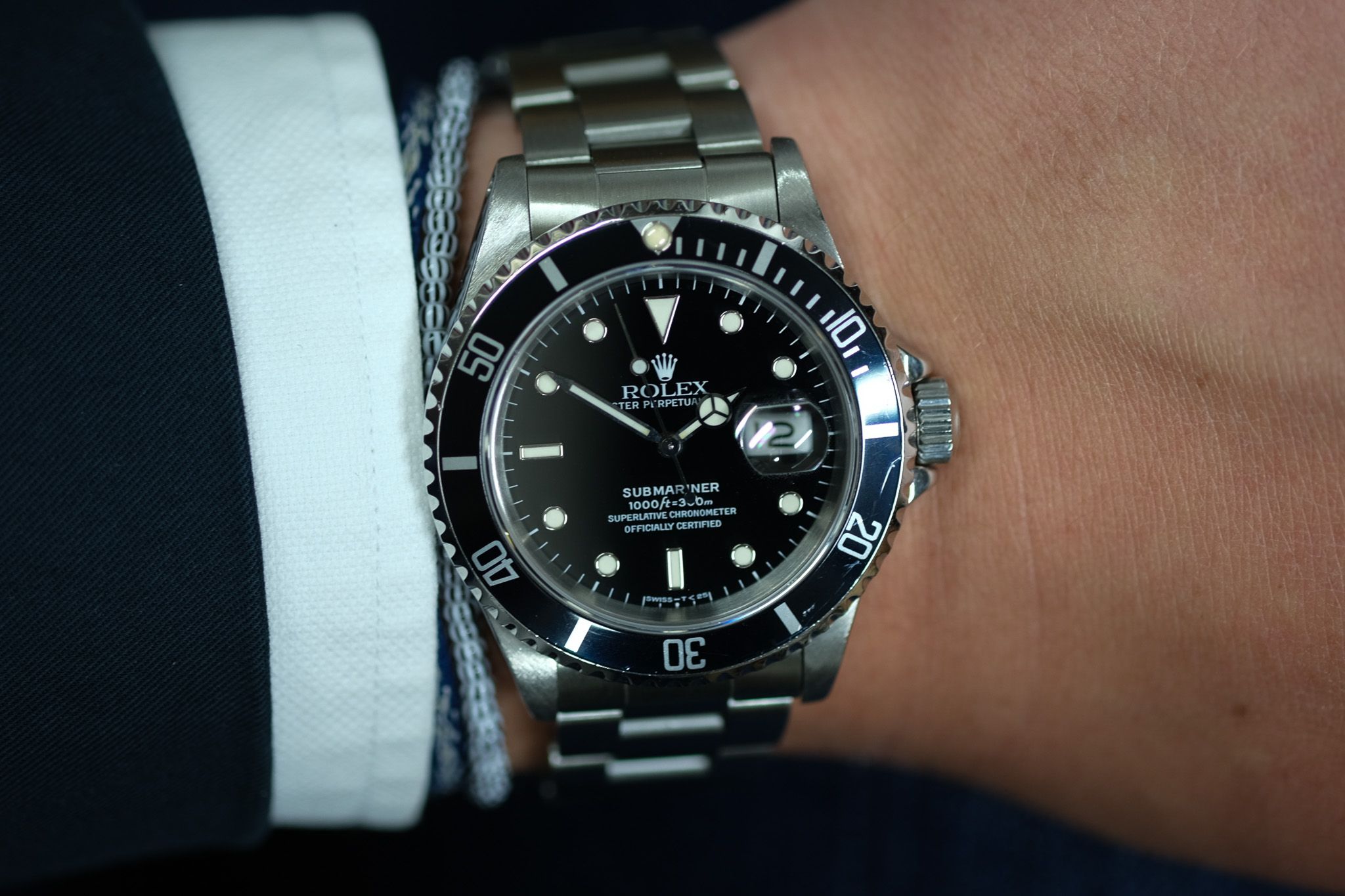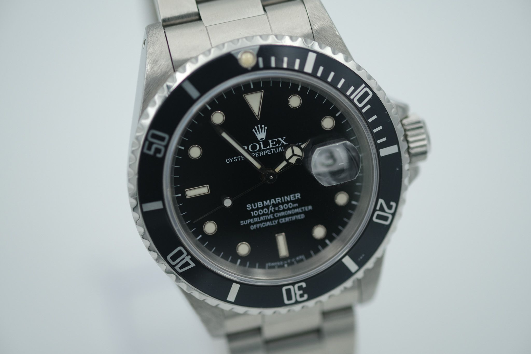 Nuestra referencia 16610 fue comprada en mayo de 1992. El reloj viene con el set completo y la factura de compra original por 3,750 marcos.