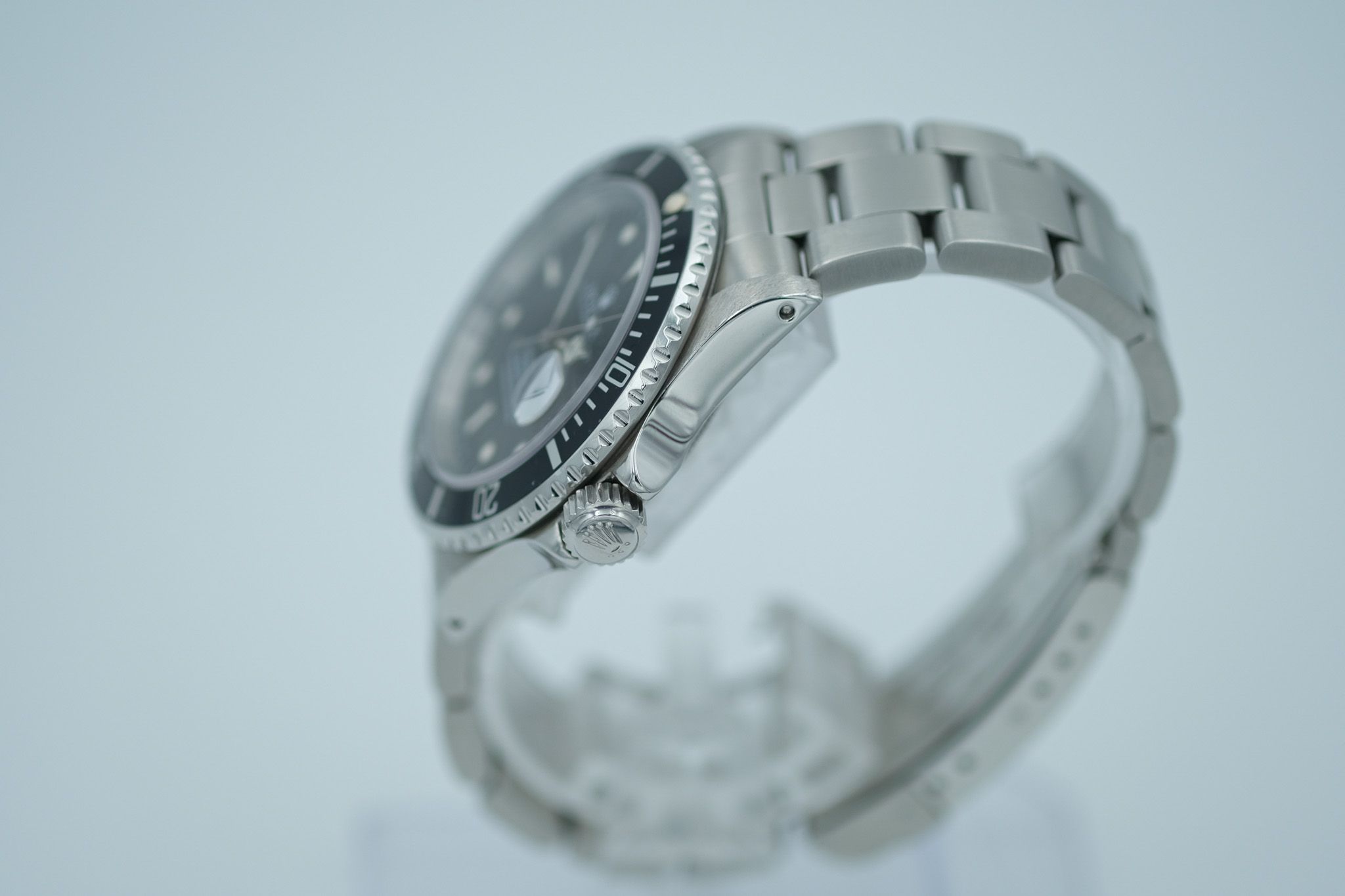 The launch of the Submariner in 1953 was the brainchild of the then Rolex director Reneé-Paul Jeanneret. He wanted a diver's watch that was technically and functionally up to date, but at the same time had such an elegant design that it could be worn with a suit without hesitation. Thus the Submariner was born. The watch with which you could sit in a board meeting in the morning and go diving in the Mediterranean with Jacques Cousteau at lunchtime.Our reference 16610 was purchased in May 1992. The watch comes with the complete full set and the original purchase invoice for 3,750 marks.