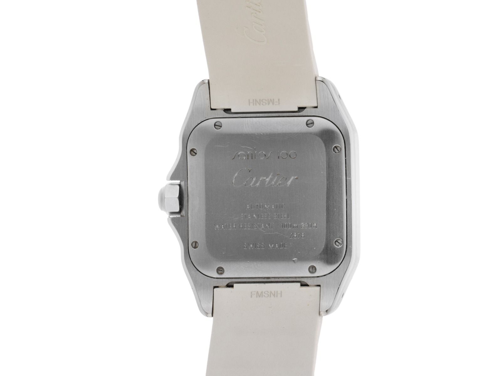 Cartier Santos 100 Marfil GM Gran Modelo Acero Automático Correa Caucho