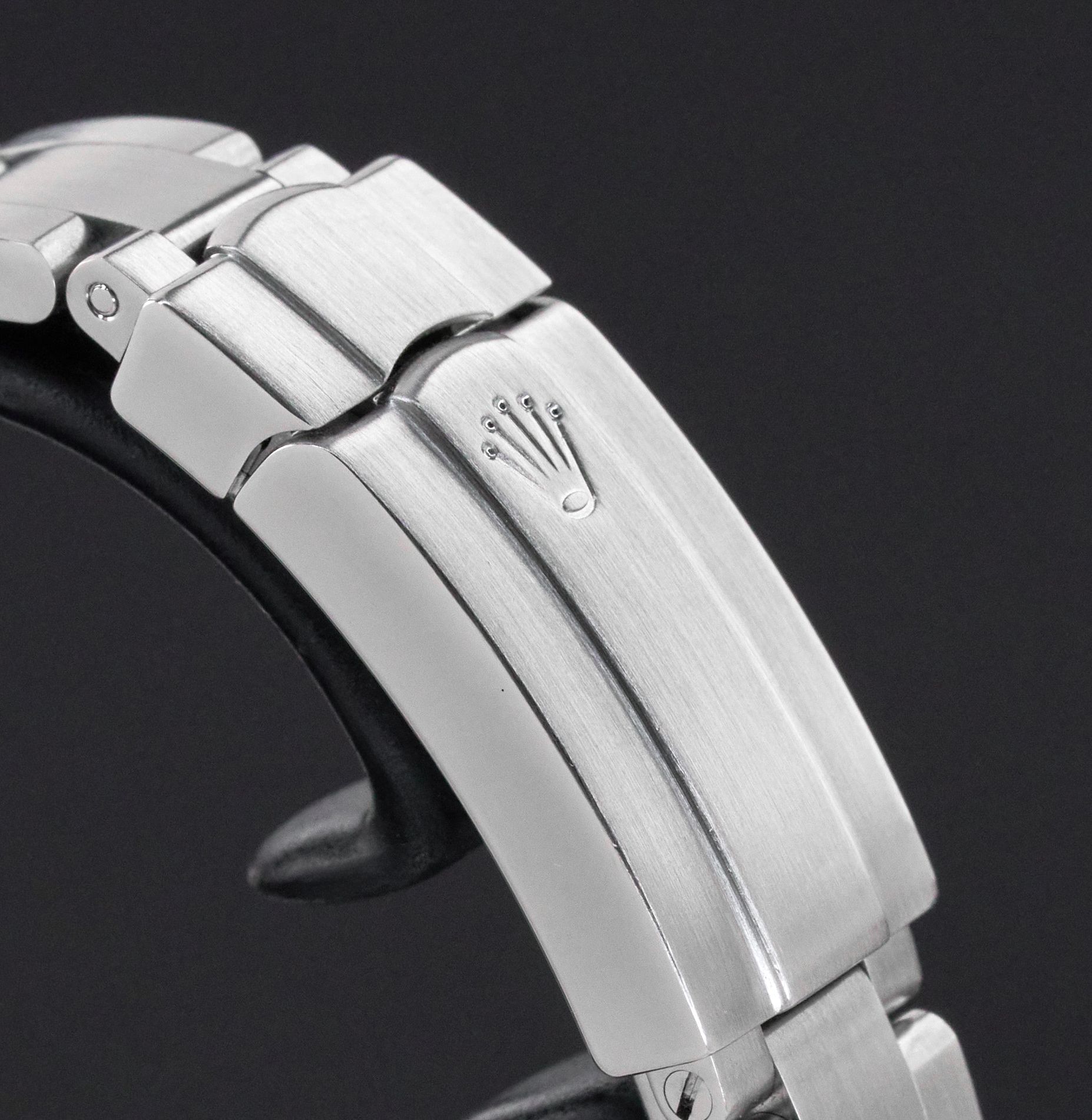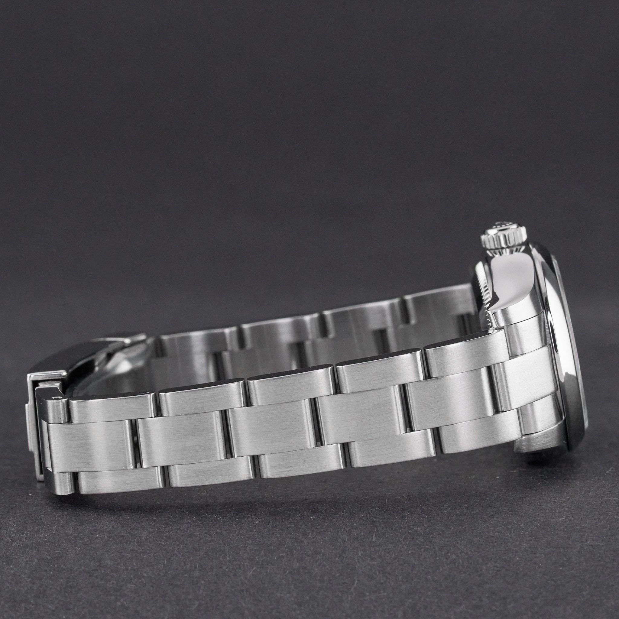 Este Rolex Oyster Perpetual Lady 176200 cuenta con una esfera plateada con números árabes y está fabricado en acero inoxidable, con un año de producción de 2008.