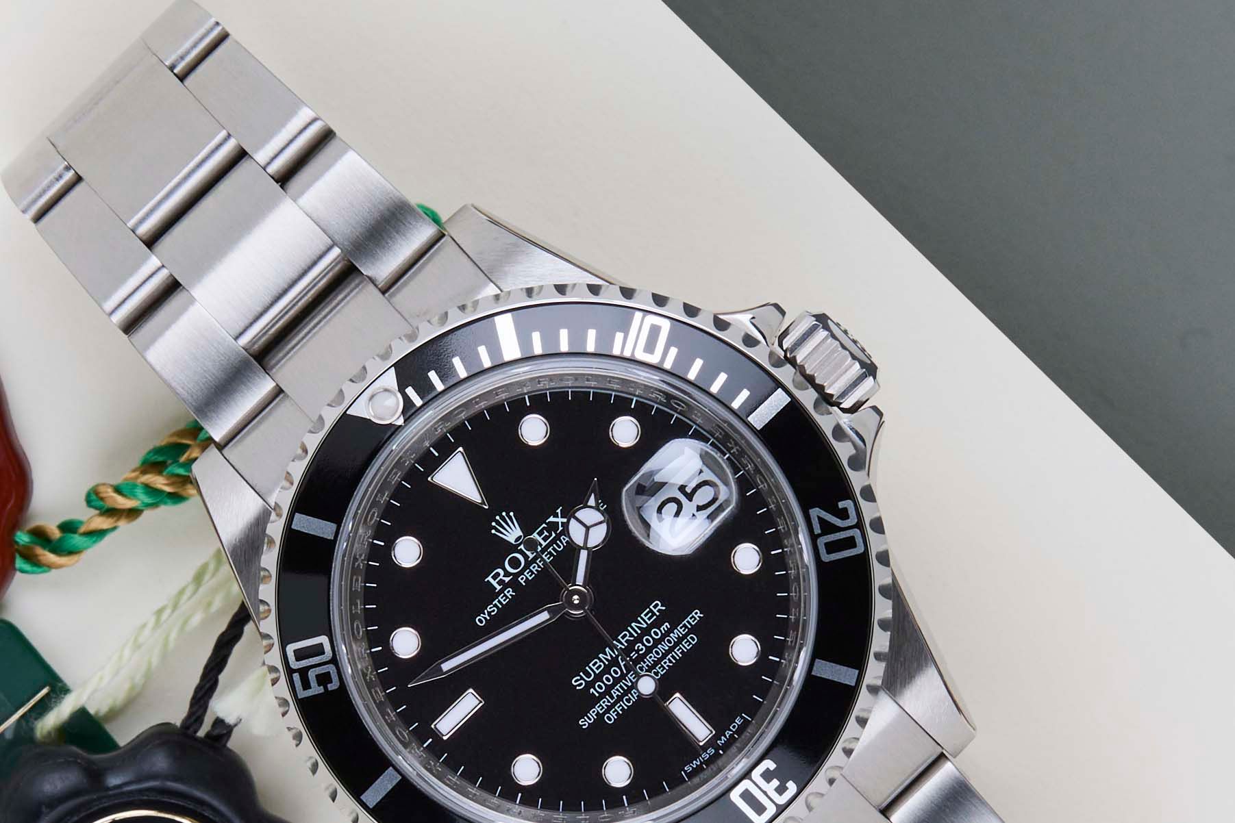 New & Unworn (NOS) | Full Set | Including Rolex Green Tag | Bracelet Code 93250 | Clasp Code LT2 | V-SerialThe Rolex Submariner was introduced by Rolex in 1953. The Submariner is known for its durability, reliability, and precision, and it has become one of the most iconic and recognizable watch models in the world.This generation of the Rolex Submariner reference 16610 was in production from 1989 to 2010. As this particular Rolex Submariner was initially sold in January 2010. This Rolex Submariner is in New & Unworn (NOS) Condition and comes with the original Rolex Warranty papers and Box. Furthermore, the watch has been checked by our watchmaker, and therefore, it comes with one year of Steiner warranty.