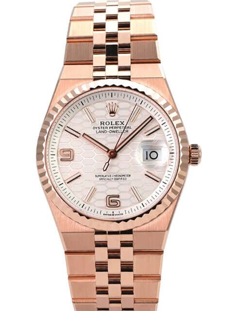 Rolex Land-Dweller 36 Rolex Land-Dweller 36 Everose Gold 127235 Deep White Honeycomb Flat Jubilee Band