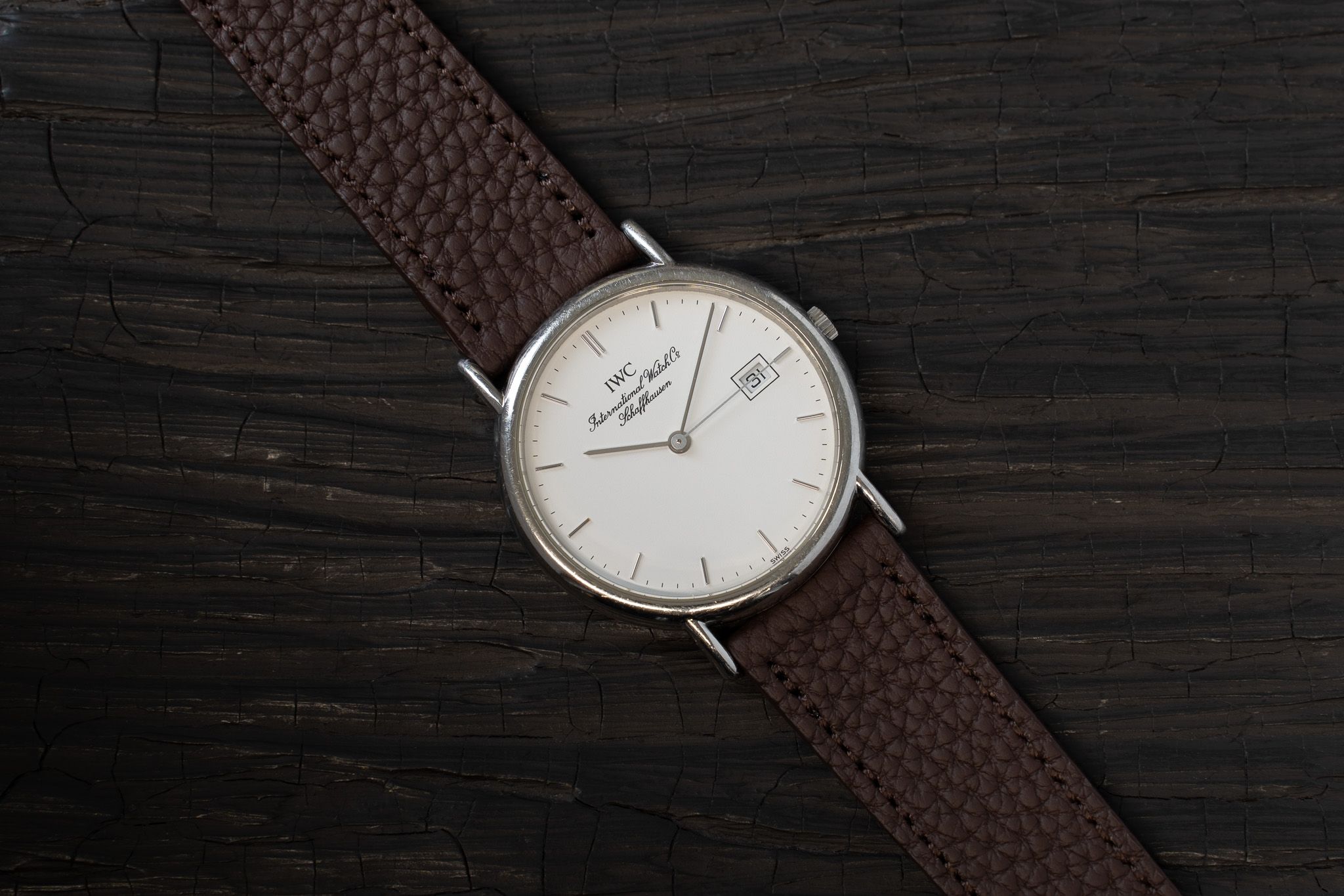 The original box and papers are included. The original IWC pin buckle is attached. The watch was purchased from a German dealer in 2002.