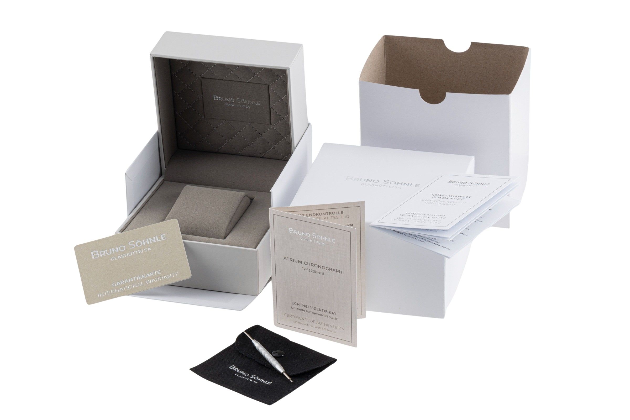 Accessories: Original Bruno Söhnle Glashütte box as pictured, Original papers as pictured, Booklets as pictured