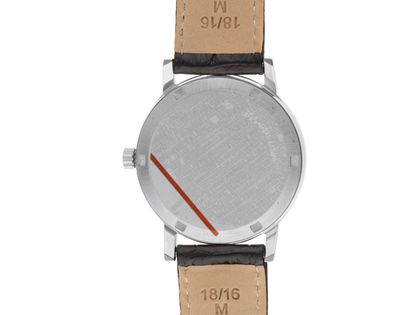 Caja de oro amarillo, pulida y chapada, diámetro de la caja sin corona 34mm, altura de la caja 11,3mm. Correa de cocodrilo marrón oscuro con costura decorativa, ancho de asa 18mm, hebilla de pin de acero inoxidable. Esfera de color plateado ligeramente patinada con índices en oro amarillo aplicados y agujas en oro amarillo. Movimiento manual, calibre Omega 613 con 17 rubíes. Indicador de hora, minuto y segundo a través de agujas centrales, indicador de fecha a las 3 en punto. Cristal de plexiglás abombado. Corona estriada. Fondo de acero inoxidable atornillado. Peso del reloj incluyendo la correa 45g. Número de referencia: 136.070, año de fabricación: 1970, número de caja: 28154XXX ID: P181418001025H-3100, número de artículo: 10000082903. Con control de marcha y completa restauración exterior de noviembre de 2025. Caja original de Omega y extracto del Watch Register de noviembre de 2025, certificado del Watch Register / sin entrada (base de datos internacional de relojes perdidos o robados). Superoferta, pieza de colección muy rara. Muy buen estado. Tiempo de entrega inmediato.