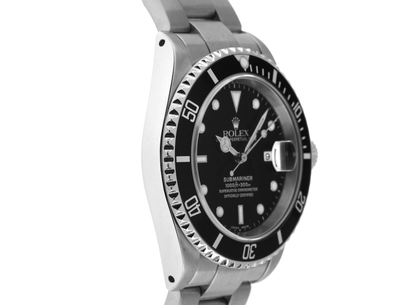 Caja de acero pulido y satinado, diámetro de la caja sin corona 40mm, altura de la caja 12,8mm. Bisel de acero estriado con inserto negro y escala de 60 minutos, Flat 4, unidireccional. Pulsera Oyster de acero satinado, cierre desplegable de seguridad de acero con el logo del fabricante. Esfera negra con índices en oro blanco aplicados y manecillas en oro blanco. Movimiento automático, calibre de manufactura Rolex 3135 con 31 rubíes. Indicación de hora, minuto y segundo a través de manecillas centrales con parada de segundero para un ajuste preciso de la hora, indicación de fecha con ajuste rápido bajo lupa a las 3 en punto. Cristal de zafiro resistente a los arañazos. Corona atornillada con protección lateral y logo del fabricante. Fondo de acero atornillado. Peso del reloj incluyendo la pulsera 131g, longitud de la pulsera incluyendo la caja 175mm. Número de referencia: 16610, número de caja: K3535XXX, año de fabricación: 2001, ID: KA1721169481125H-12500, número de artículo: 10000083031. Con control de marcha y completa restauración exterior de noviembre de 2025. Caja original de Rolex con caja exterior así como descripción, estuche de cuero, folleto de traducción, certificado de cronómetro Rolex y extracto del registro de relojes de noviembre de 2025, Certificado de The Watch Register / sin entrada (Base de datos internacional de relojes perdidos o robados). Superoferta, inversión con potencial de revalorización, pieza de colección muy rara. Como nuevo. Tiempo de entrega inmediato.