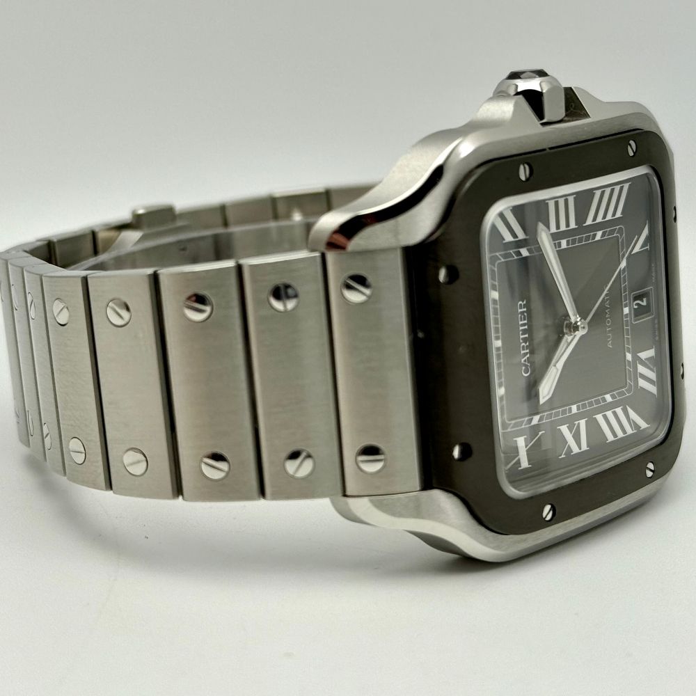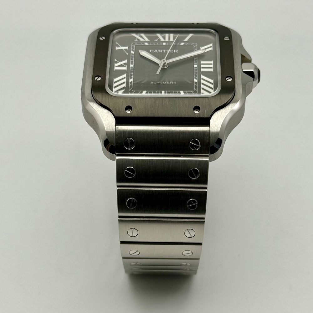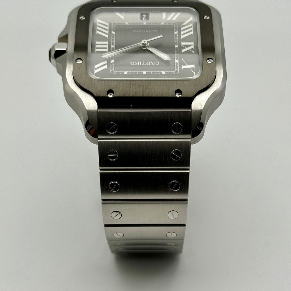 Founded in 1847 in Paris, Cartier is one of the most prestigious names in watchmaking and jewelry, known for its timeless design, elegance, and craftsmanship. The Santos de Cartier holds a special place in horological history as one of the world’s first pilot’s watches, originally created in 1904 for aviator Alberto Santos-Dumont.The Cartier Santos de Cartier, reference WSSA0037, features a 39.8 mm stainless steel case with a polished bezel and the collection’s signature exposed screws. Its black dial with blued-steel sword-shaped hands and Roman numerals captures Cartier’s unmistakable aesthetic. Powered by the in-house Cartier caliber 1847 MC automatic movement, it delivers a 42-hour power reserve and a frequency of 28,800 vph, ensuring both precision and reliability.