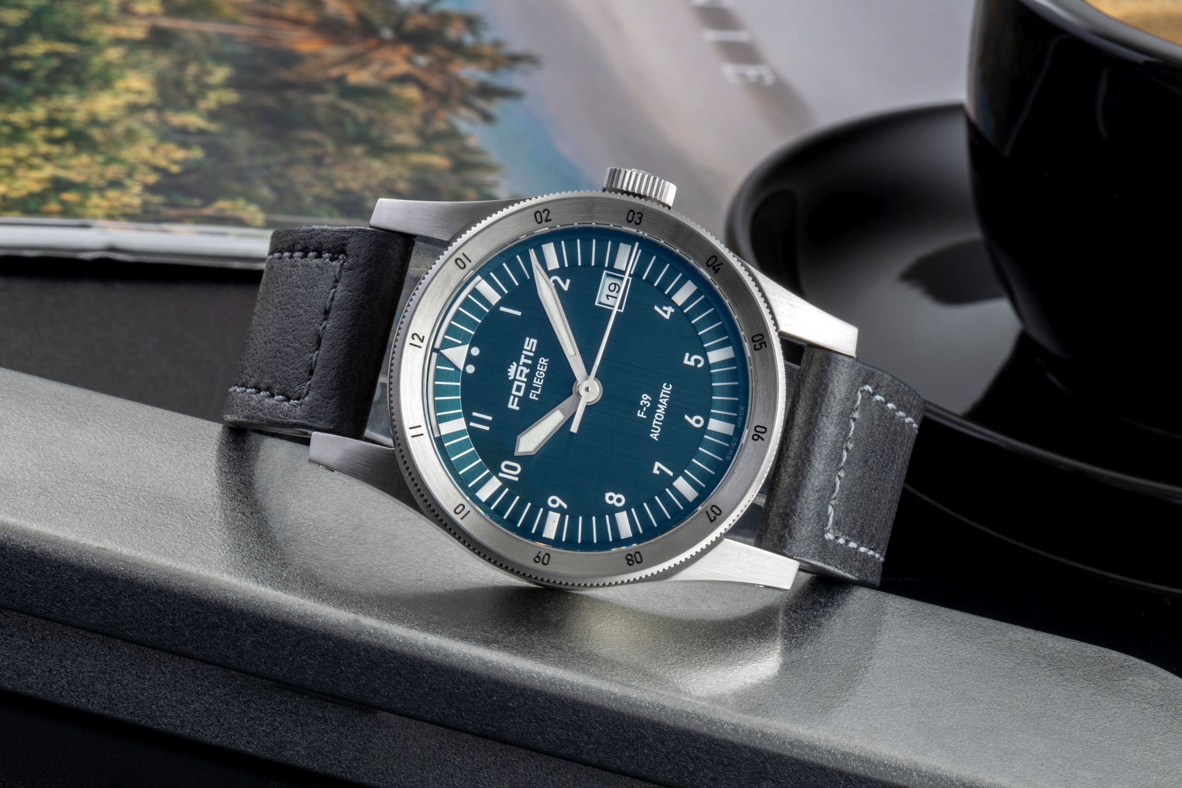 Alternative title: Fortis Flieger F-39 Petrol Edelstahl Automatik Herrenuhr Ref. F422.0029 Box [2506020]