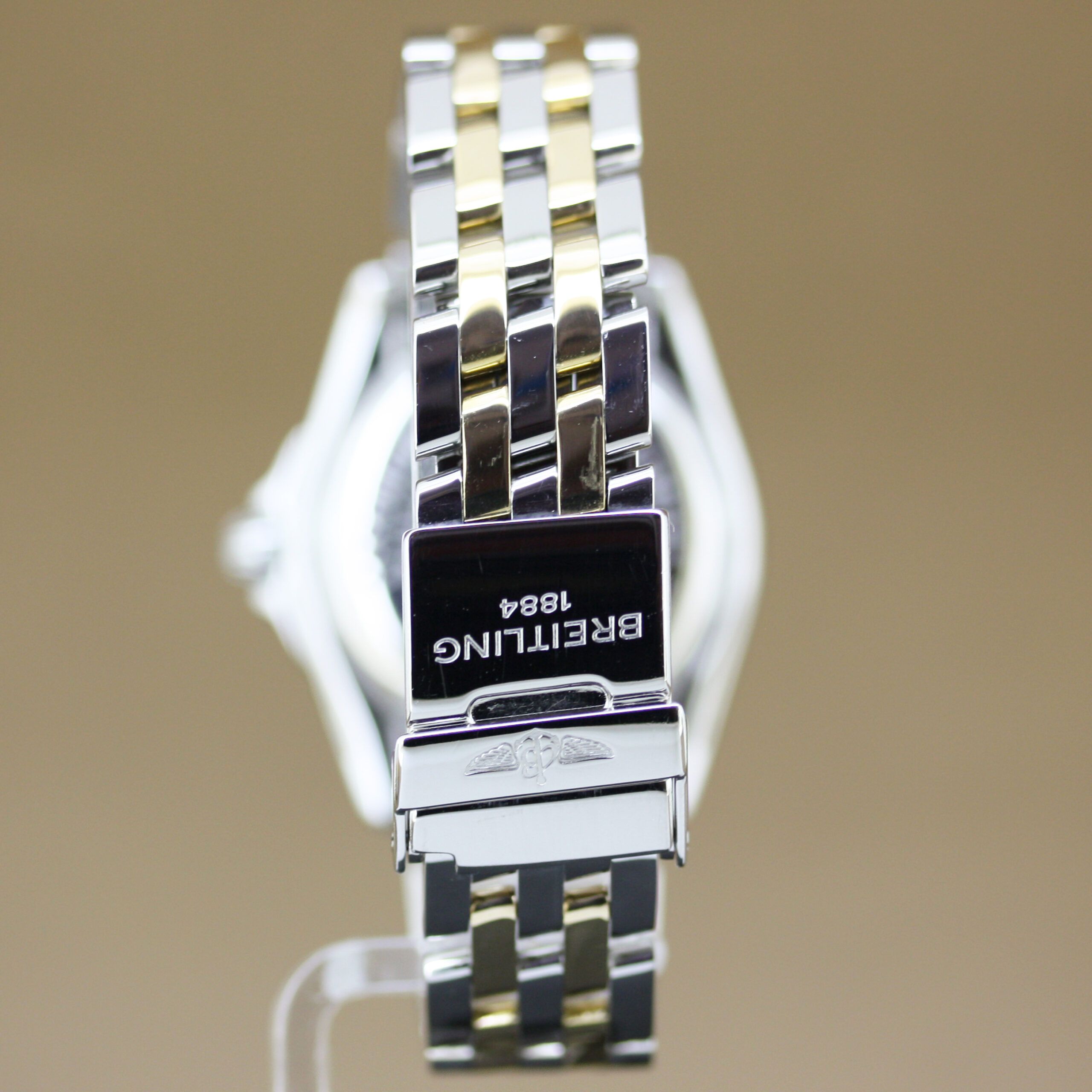 Breitling Galactic 32 Cockpit Lady – Ref. D71356 For sale: a Breitling Galactic 32 Cockpit Lady, reference D71356, in very good condition.This refined ladies’ watch features a gold and stainless-steel case with a factory-set diamond bezel, adding a touch of true luxury and elegance. The white dial with diamond hour markers enhances its sophistication, while the gold/steel Pilot bracelet with folding clasp ensures both comfort and durability.Powered by a reliable Quartz movement with date function, this watch combines precision with effortless style. Features & Scope of Delivery:✔ Reference: D71356✔ Case: Gold/Steel (bicolor)✔ Bezel: Factory-set with diamonds✔ Dial: White with diamond hour markers✔ Bracelet: Gold/Steel Pilot bracelet with folding clasp✔ Movement: Quartz with date function✔ Diameter: 32 mm✔ Condition: Very good✔ Original box & papers included A stunning Breitling Galactic 32 Cockpit Lady, featuring a factory diamond bezel and diamond-set dial, perfectly combining elegance, quality, and Swiss craftsmanship.