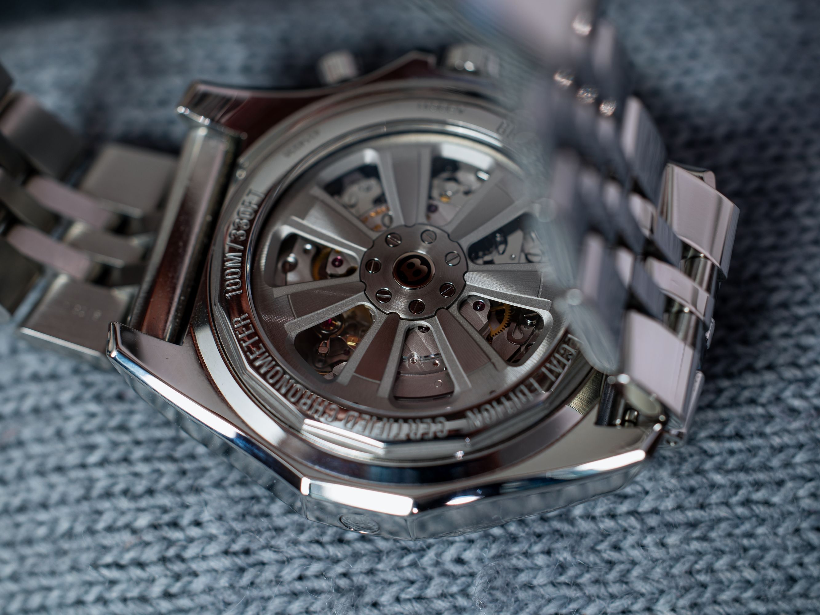 En su interior late el Calibre B06 de Breitling, que ofrece una reserva de marcha de aproximadamente 70 horas y cuenta con el exclusivo sistema de cronógrafo de 30 segundos de Breitling, una marca patentada de la casa.