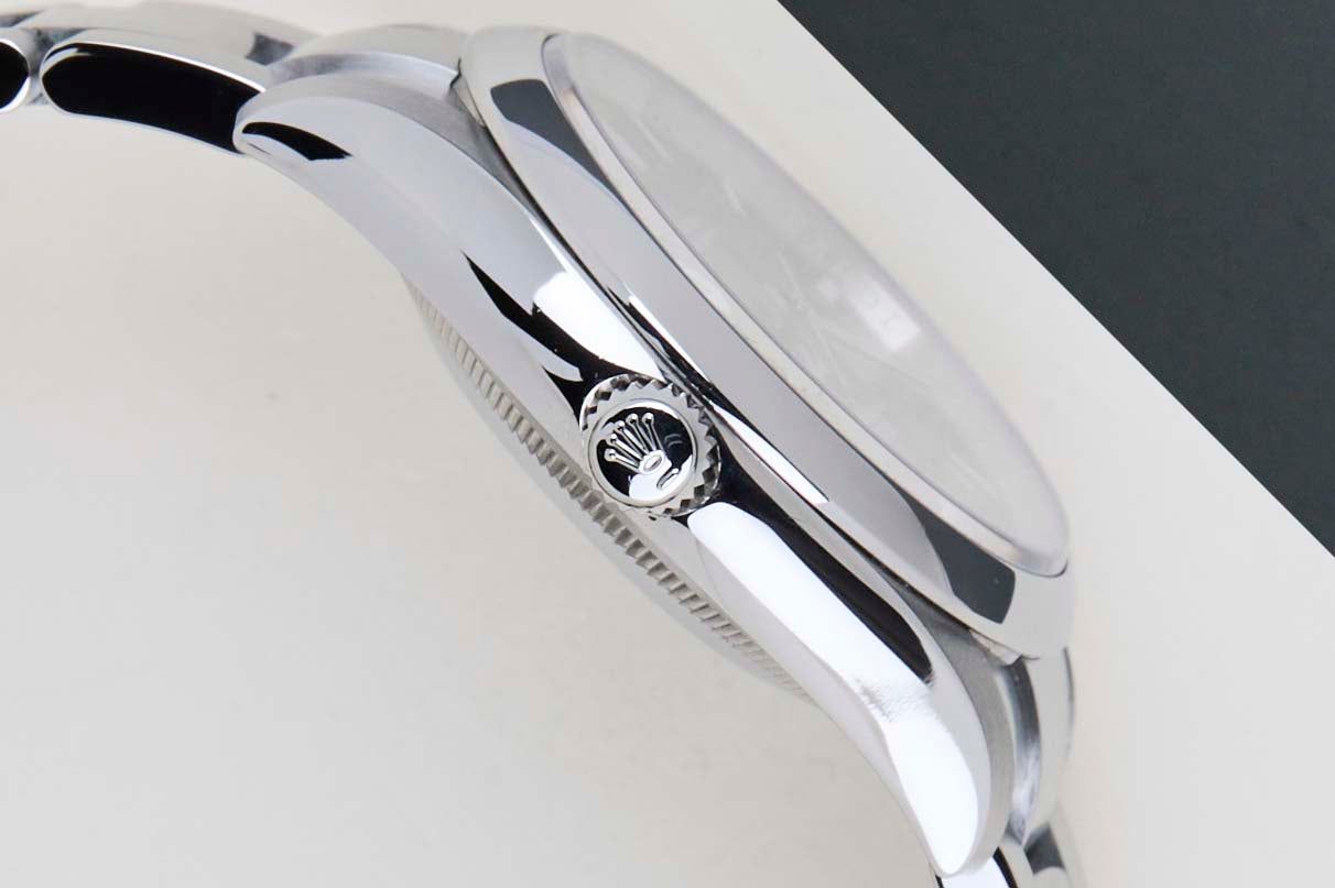 Este increíble Rolex Oyster Perpetual está en condiciones asombrosas y viene con la Tarjeta de Garantía original de Rolex y su Caja. Además, el reloj ha sido revisado por nuestro relojero, por lo que incluye un año de garantía Steiner.