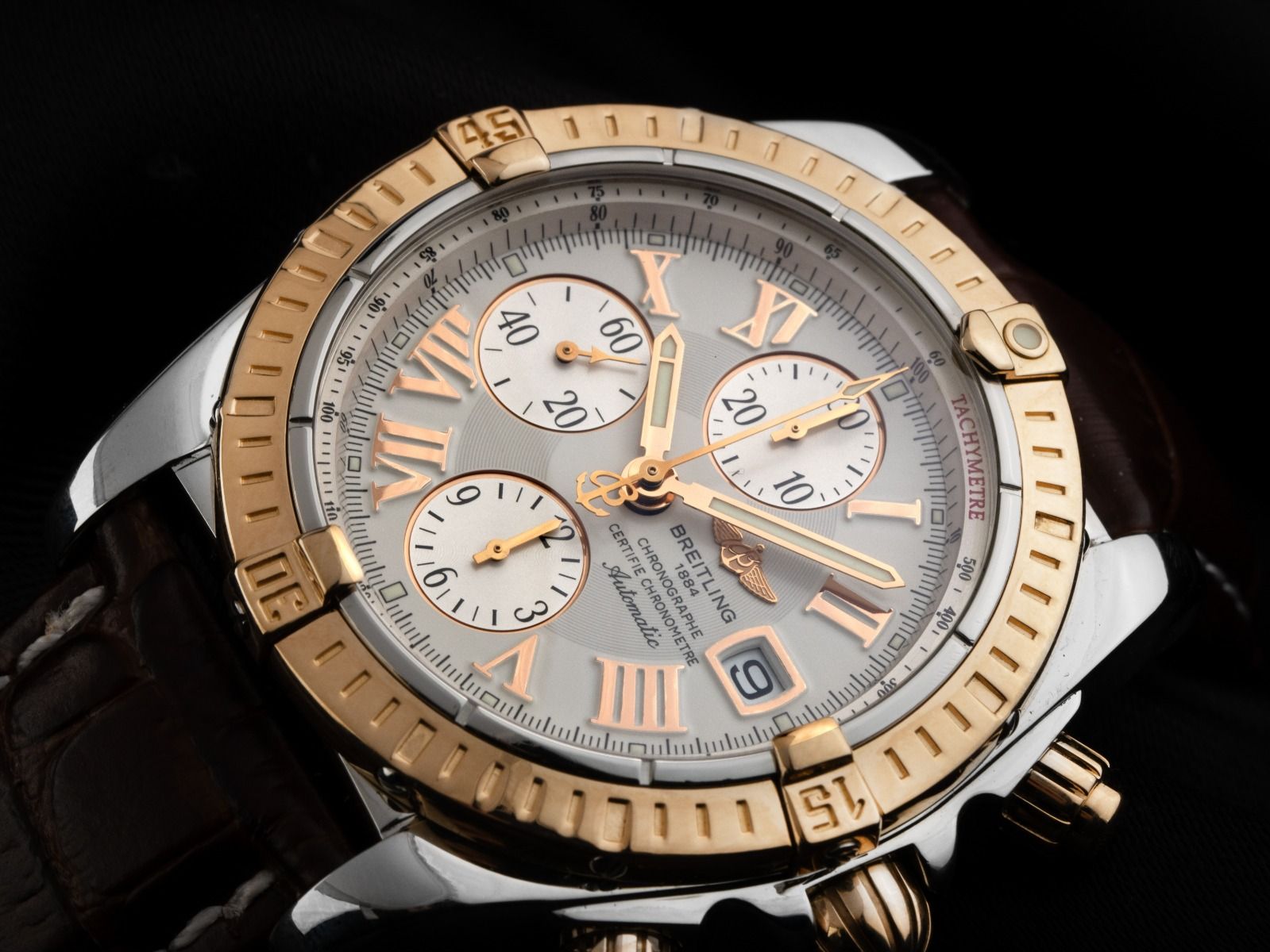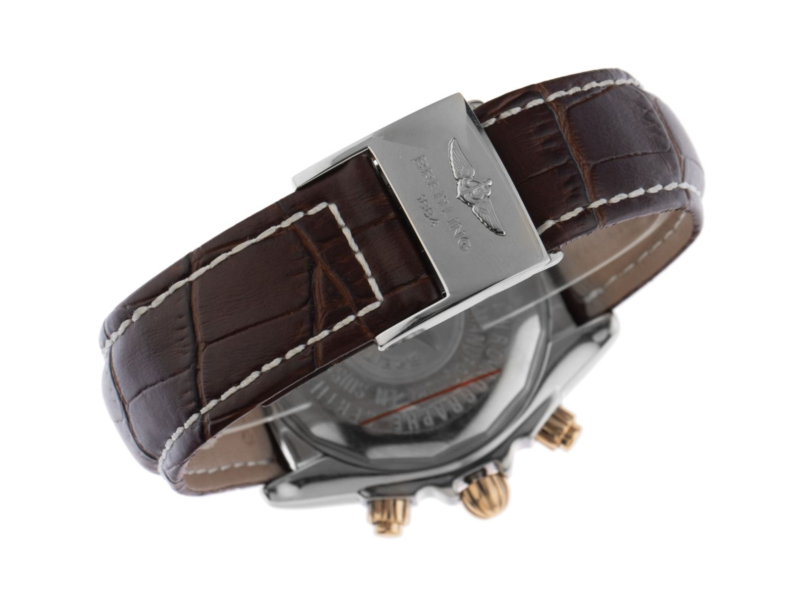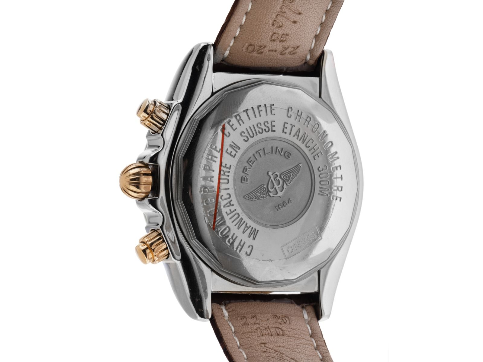 Caja de acero inoxidable, pulida, diámetro de la caja sin corona 44mm, altura de la caja 17mm, bisel de oro rosa de 18kt con escala de 60 minutos, unidireccional y escala de taquímetro bajo cristal. Correa de cocodrilo marrón con costura clara, ancho de asas 22mm, cierre desplegable de acero inoxidable con logo del fabricante. Esfera color crema con números romanos en oro rosa aplicados y agujas en oro rosa. Movimiento automático, cronógrafo, cronómetro con certificado, calibre de manufactura Breitling 13 con 25 rubíes. Indicador de horas y minutos a través de agujas centrales, segundero pequeño con parada de segundos para ajuste preciso de la hora a las 9, indicador de fecha con ajuste rápido a las 3. Cristal de zafiro resistente a los arañazos. Corona en forma de cebolla atornillada con protección lateral. Fondo de acero atornillado y grabado. Peso del reloj incluyendo la correa 148g. Número de referencia: C13356, número de caja: 2208XXX, ID: P188668741125H-7400, número de artículo: 10000083122. Con control de marcha y reacondicionamiento completo exterior de noviembre de 2025. Caja original de Breitling con caja exterior y documentos de garantía de diciembre de 2012, descripción y extracto del registro de relojes de noviembre de 2025, certificado de The Watch Register / sin entrada (base de datos internacional de relojes perdidos o robados), Full Set. Super oferta. Como nuevo. Tiempo de entrega inmediato