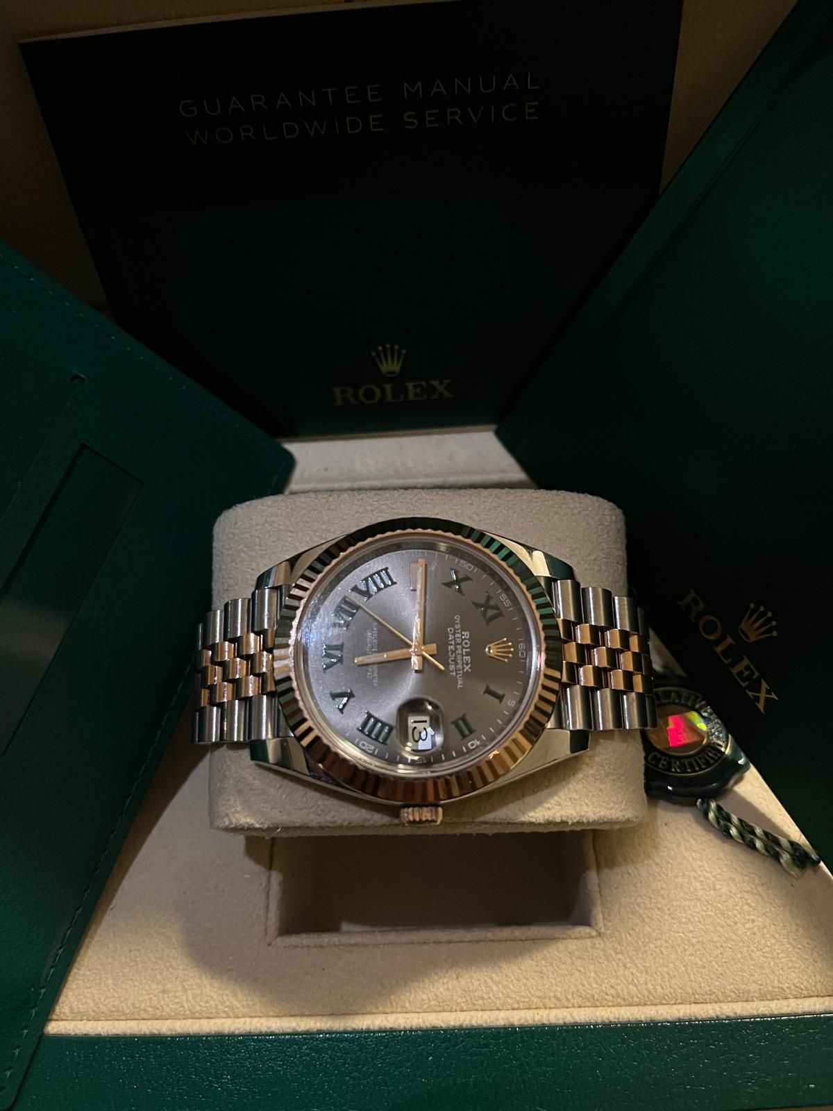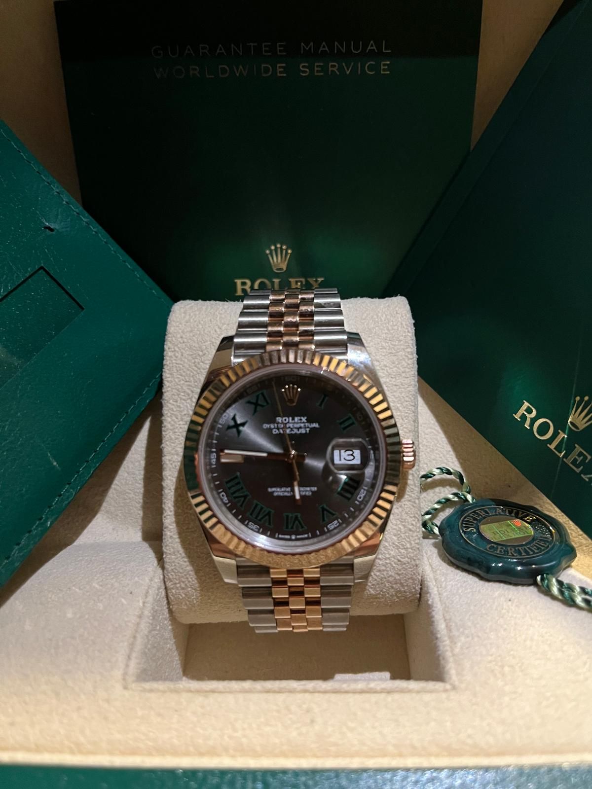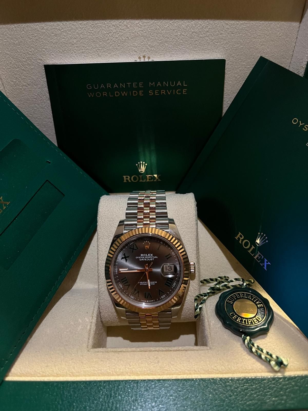 Elegant and Timeless Rolex Datejust 126331 in Rose Gold & Steel with Jubilee Bracelet – A True Icon of Sophistication and Versatility.This stunning timepiece is in excellent condition and comes as a full set, including box, papers, full links, and the original Rolex accessories. An exceptional opportunity to acquire a beautifully maintained Datejust in immaculate condition.