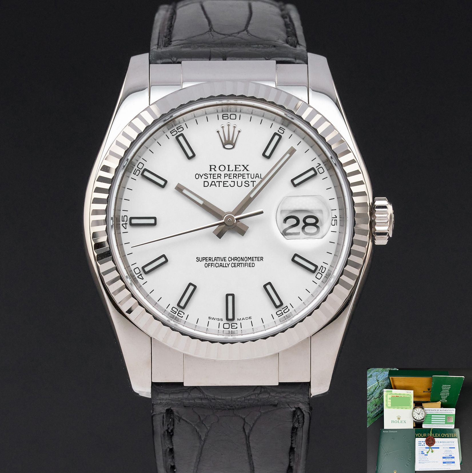 Rolex Datejust 36 Rolex Datejust, 116139, 36mm, 2001, White gold, White dial, Fullset, 1y warranty