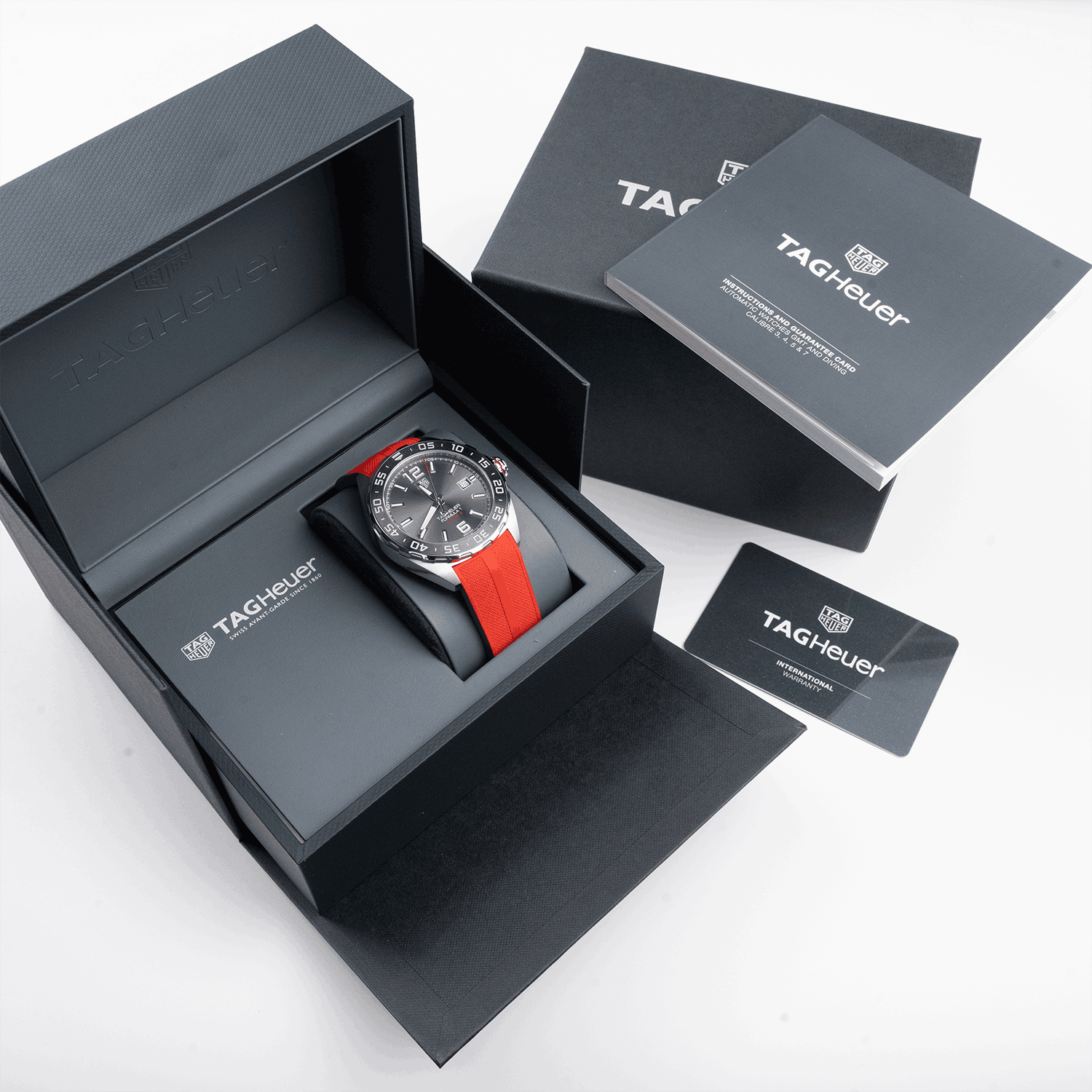 El primer Formula 1 se presentó en 1986, lo que subraya la conexión de Tag Heuer con el automovilismo. La colección Formula 1 se caracteriza por su colorido y originalmente se entregaba incluso con bisel de plástico. Con esto, Tag Heuer quería competir con los coloridos relojes de Swatch tras la crisis del cuarzo, aunque con un acabado mucho más alto. Los pilotos más exitosos del mundo, incluidos Ayrton Senna, Kimi Raikkonen, Lewis Hamilton y muchos más, ya llevaban el Formula 1 en la muñeca. Hasta hoy, el Formula 1 está disponible opcionalmente con movimiento automático o de cuarzo y suele adornarse con una complicación de fecha.