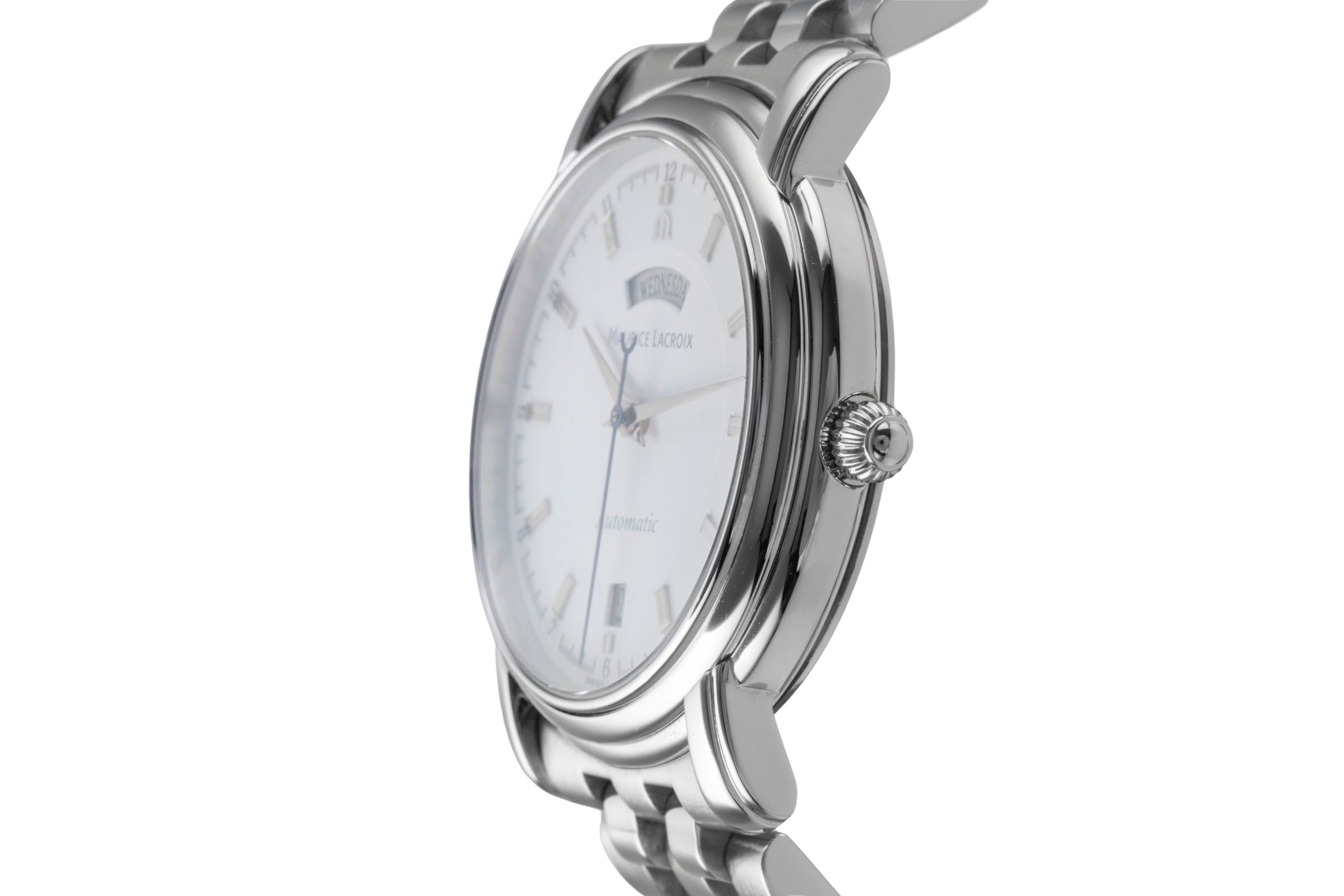 Alternative title: Maurice Lacroix PT6027 Pontos Day Date Day Date Pontos; Maurice Lacroix Pontos Day/Date Stahl Automatik Herrenuhr Ref. PT6027 [2506152]