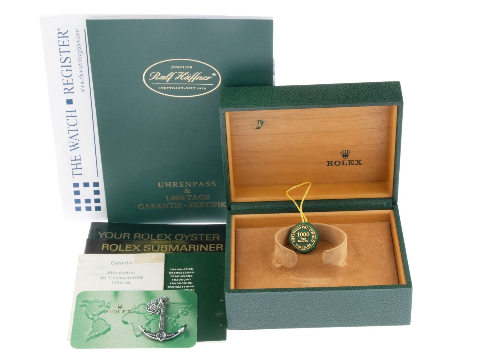 Inklusive certified pre owned Siegel / Uhrenpass mit einem Farbbild, der genauen Beschreibung sowie dem Wiederbeschaffungswert der Uhr über 20800,-€ und 1000 Tage Garantie ab Kaufdatum.