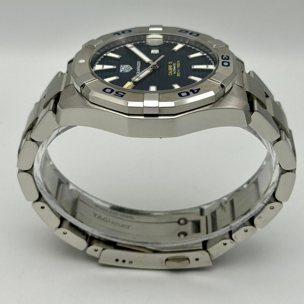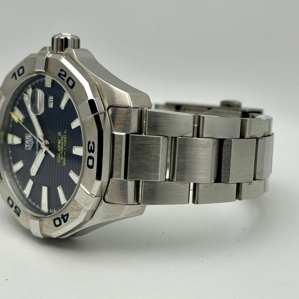Founded in 1860 in Saint-Imier, Switzerland, TAG Heuer has built a strong reputation for precision timekeeping, durability, and sporty design. The Aquaracer collection embodies the brand’s commitment to professional dive watches, offering robust construction and versatile everyday performance.The TAG Heuer Aquaracer, reference WAY2012.BA0927, features a 43 mm stainless steel case with a striking sunray blue dial, accented by luminous hands and indexes for excellent readability in all conditions. Powered by the TAG Heuer Calibre 5 automatic movement (based on the Sellita SW200-1, with a 38-hour power reserve and a frequency of 28,800 vph), it offers hours, minutes, central seconds, and a date display positioned at 3 o’clock.