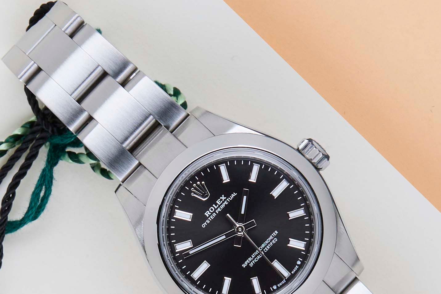 Full Set | Internationale Rolex Warranty Until June 2026 | European Rolex Warranty Sticker (Finland) | Including Rolex White Tag The Rolex Oyster Perpetual was first introduced by Rolex in the 1930s. It is characterized by its water-resistant Oyster case and self-winding Perpetual movement. The Rolex Oyster Perpetual a simple, yet elegant timepiece that is suitable for both casual and formal wear. This Rolex Oyster Perpetual 28 ‘Black Dial’ was sold for the first time in June 2021. The watch is fully made out of stainless steel. Rolex uses 904L in it’s steel watches, which is an extremely resistant and highly polishable superalloy. The watch is equipped with a classis 'Black Dial'. This amazing Rolex Oyster Perpetual 28 'Black Dial' is mint condition and comes with the original Rolex Warranty Card and Box. Furthermore, the watch still has International Rolex Warranty until June 2026.