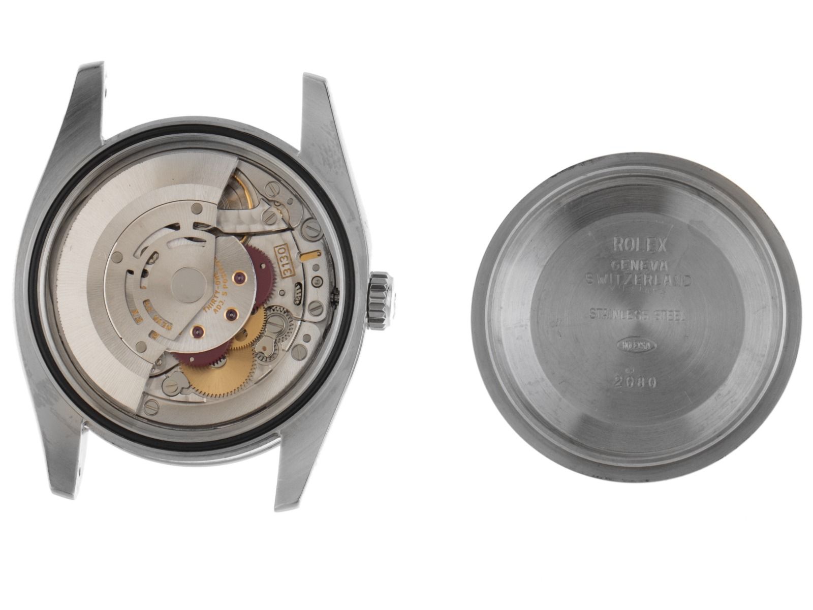 Caja de acero inoxidable pulido y satinado, diámetro de la caja sin corona 36mm, altura de la caja 11,8mm. Bezel de oro blanco 18kt pulido y estriado. Pulsera Oyster de acero inoxidable satinado, cierre desplegable de acero inoxidable con logo del fabricante. Esfera blanca con índices de diamante aplicados, números romanos negros y agujas de oro blanco. Movimiento automático, cronómetro con certificado, calibre de manufactura Rolex 3135 con 31 rubíes. Indicación de horas, minutos y segundos a través de agujas centrales con parada de segundos para un ajuste preciso de la hora. Cristal de zafiro resistente a los arañazos. Corona atornillada con logo del fabricante. Fondo de acero atornillado. Peso del reloj incluyendo la pulsera 122g, longitud de la pulsera incluyendo la caja 170mm. Número de referencia: 116034, número de caja: M662XXX, año de fabricación: 2007, ID: P1972135261125H-10900, número de artículo: 10000083388. Con control de marcha y restauración exterior completa de noviembre de 2025. Caja original de Rolex con caja exterior y documentos de garantía de septiembre de 2009, LC 888 / Hong Kong, así como descripción, estuche de cuero, folleto de traducción, sello de cronómetro Rolex y extracto del registro de relojes de noviembre de 2025, certificado de The Watch Register / sin entrada (base de datos internacional de relojes perdidos o robados), Full Set. Inversión con potencial de revalorización, casi sin usar. Como nuevo. Tiempo de entrega inmediato.