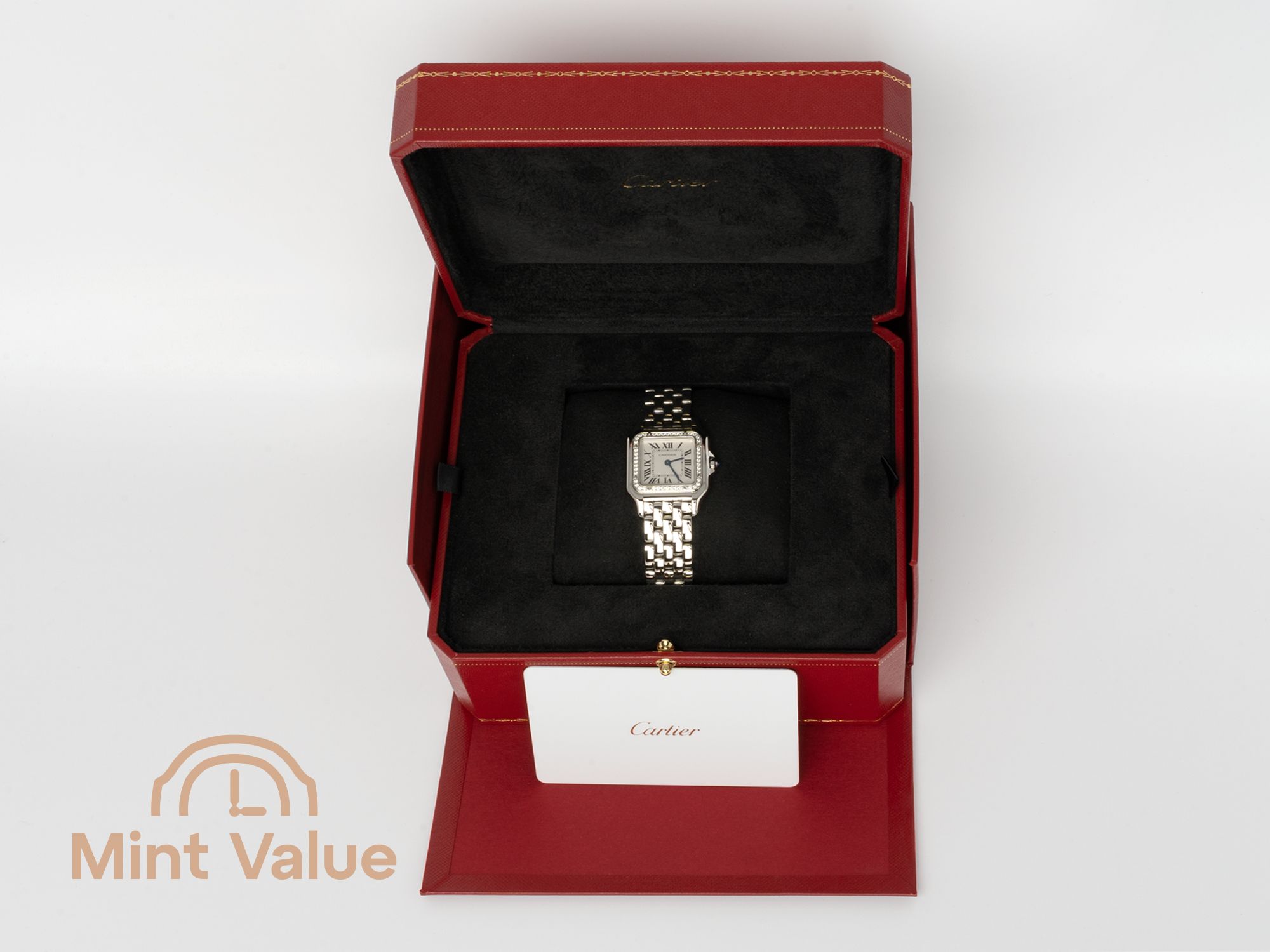 Cartier Panthère de Cartier Medium — Ref. W4PN0008A luminous expression of Cartier’s timeless design. The Panthère de Cartier stands among the Maison’s most iconic creations — a watch that doubles as a jewel, defined by elegance, fluidity, and unmistakable presence. The Medium W4PN0008 elevates this legacy through a diamond-set bezel, bringing a new radiance to the legendary silhouette first introduced in the 1980s.