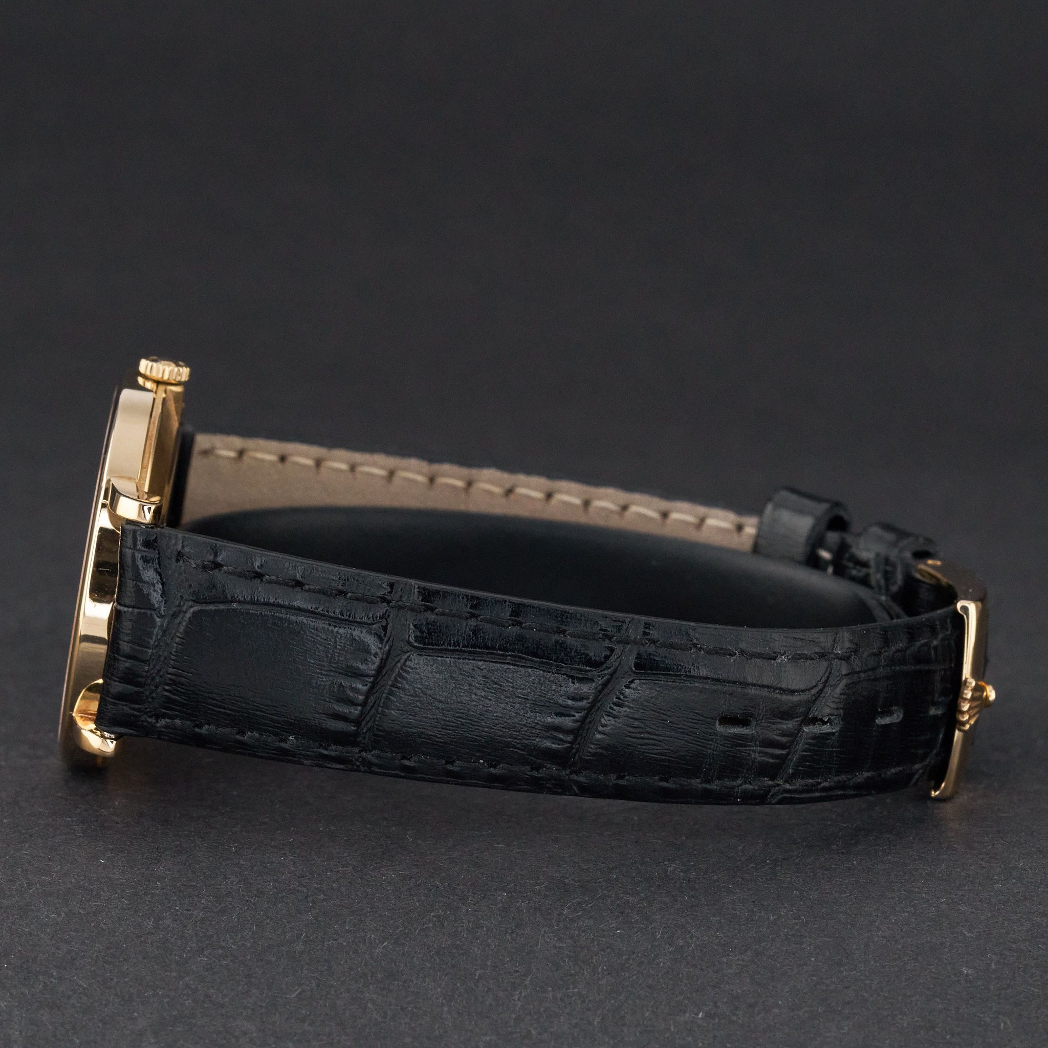 Este Rolex Cellini 5112 cuenta con una esfera romana en color marfil y está fabricado en oro amarillo de 18 quilates, con un año de producción de 1995.