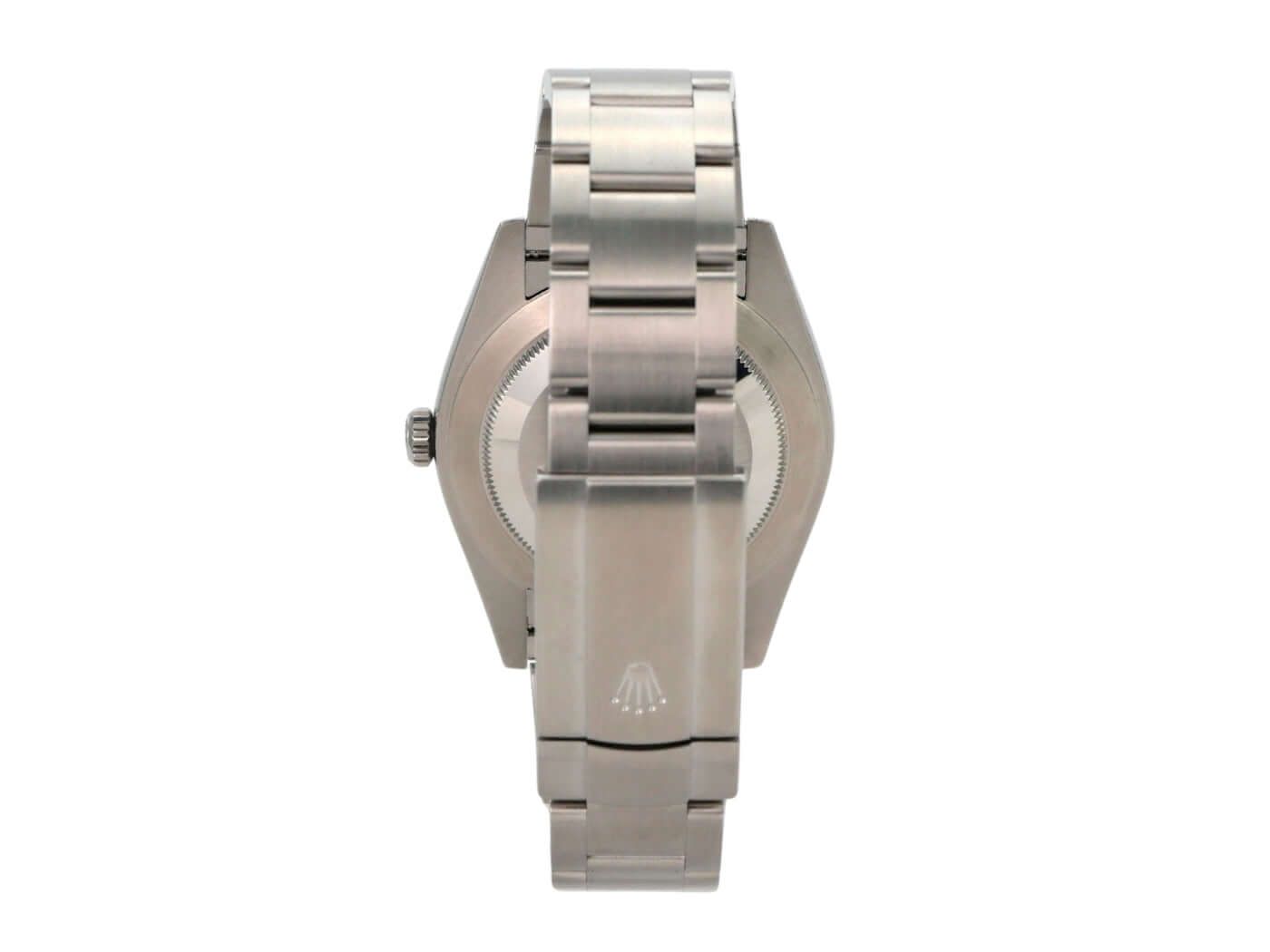 Caja hecha de acero inoxidable pulido y satinado, diámetro de la caja 41 mm, pulsera Oyster de acero inoxidable con cierre desplegable, esfera negra con índices, automático, calibre 3230 de fabricación Rolex, reserva de marcha de 70 horas, cristal de zafiro, resistente al agua hasta 10 bar.