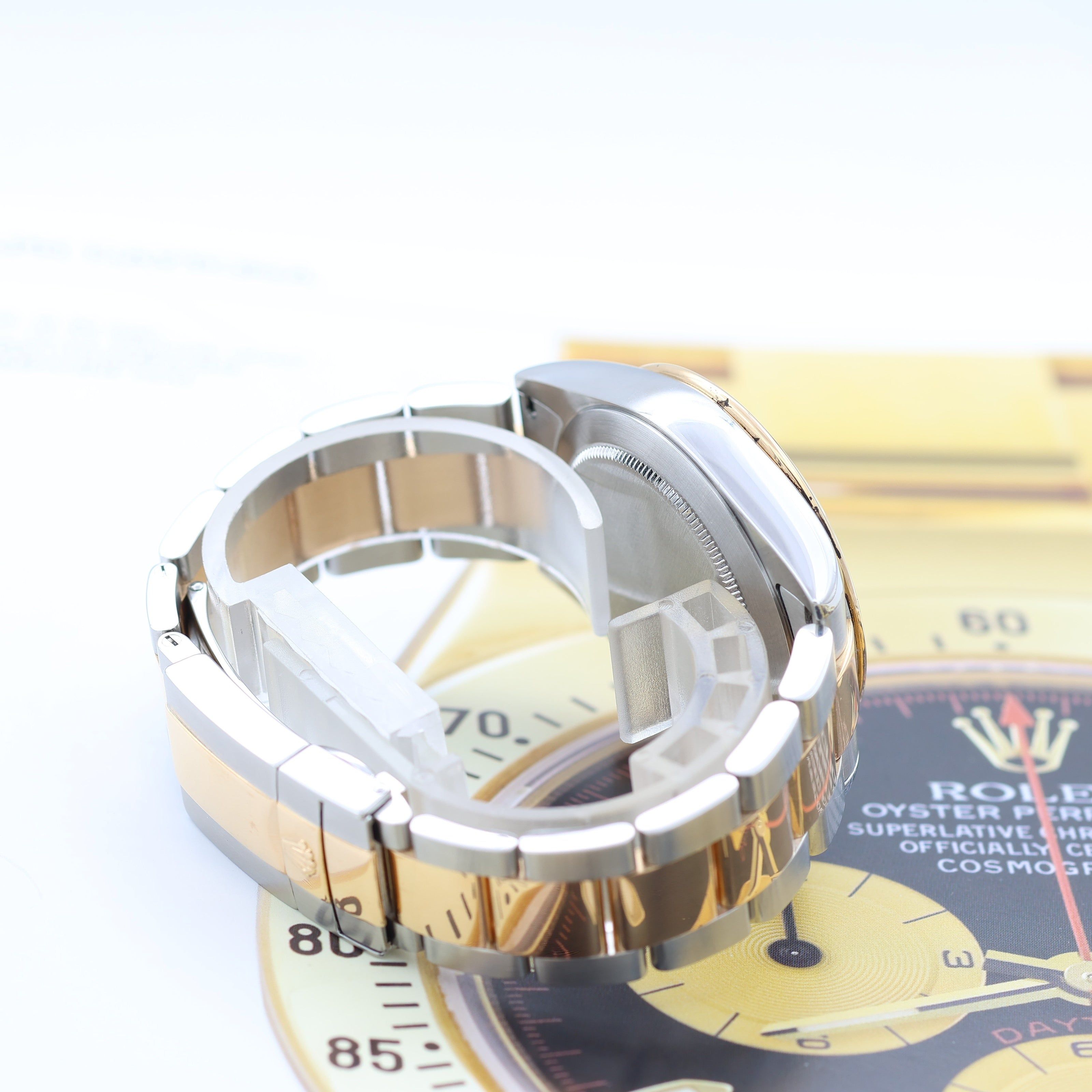En venta en Debonar Watches: Rolex Daytona 116523 de segunda mano en excelentes condiciones. Con su coloración bicolor, acero y oro de 18k, tiene sin duda la mayor versatilidad en comparación con sus compañeros de acero y oro macizo. Este cronógrafo fue diseñado para ser la herramienta de cronometraje definitiva para los pilotos de carreras de resistencia. Más de 50 años después de su creación, el Cosmograph Daytona sigue estando en una clase propia entre los cronógrafos deportivos y continúa trascendiendo el tiempo. Sinónimo de excelencia y fiabilidad, este Rolex está diseñado para el uso diario y, dependiendo del modelo, es perfectamente adecuado para una amplia gama de deportes y otras actividades. El Daytona está diseñado para aquellos con una pasión por la conducción y la velocidad.