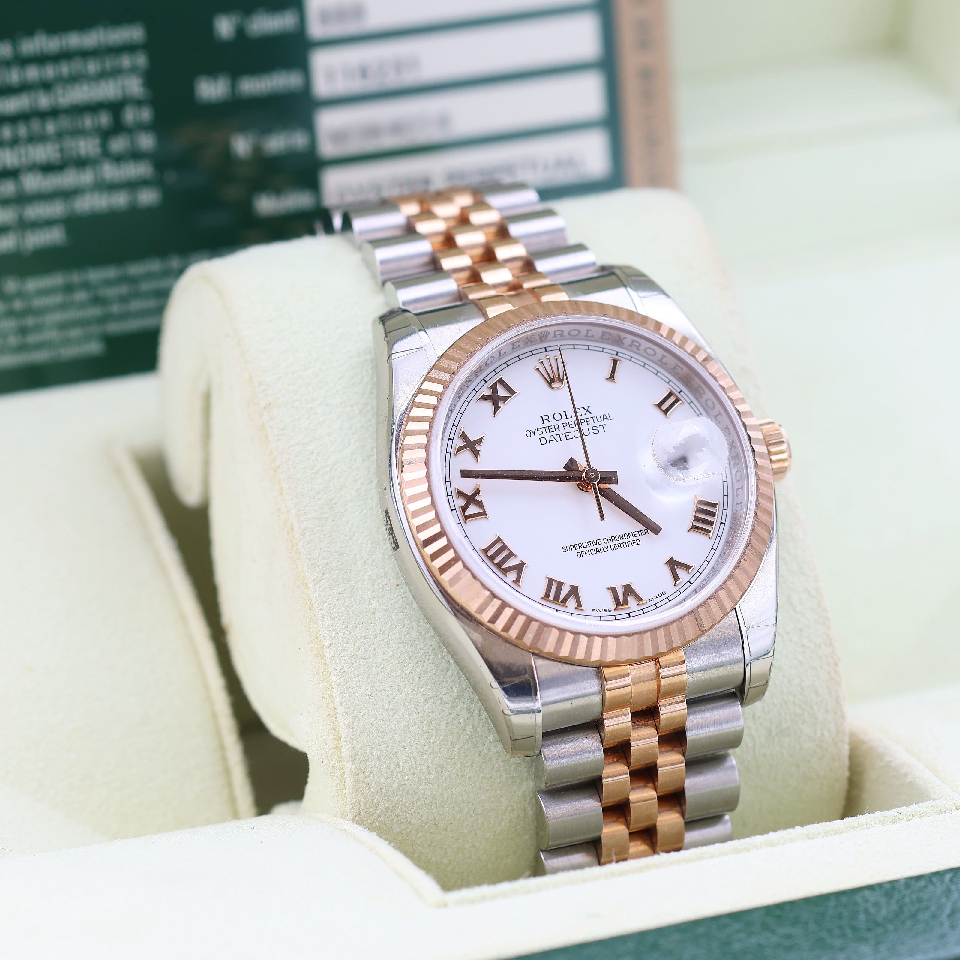 Rolex Datejust 36 ref. 116231 White Roman Dial - Steel/Rose Gold Jubilee - Full Set