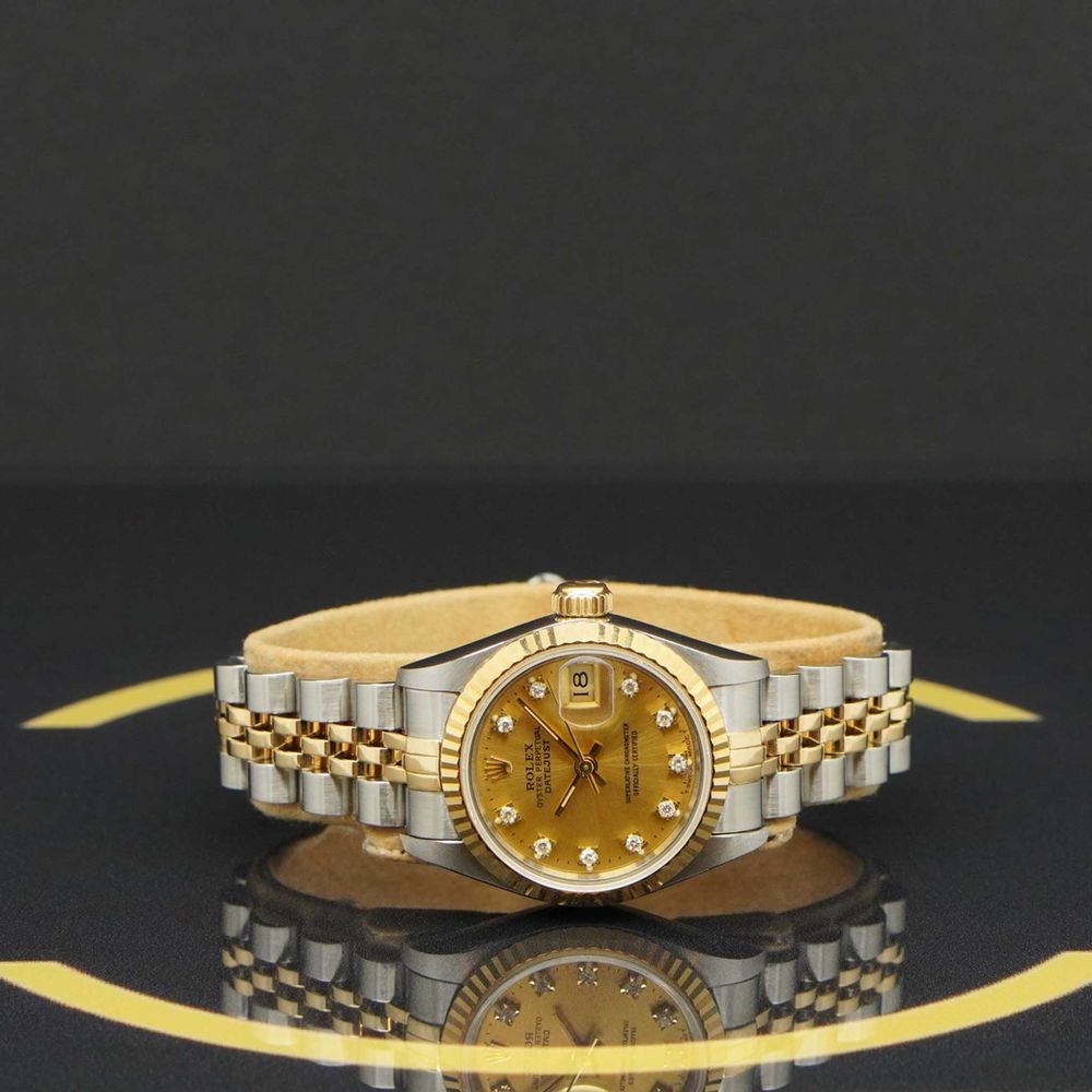 Rolex Lady-Datejust Rolex Lady-Datejust 69173 with Box & Papers from 1987. Very good condition. Every watch is checked on authenticity by our master watchmakers. With every sale an authenticity certificate is given. On every watch there is a warranty of 12 months on the watch and movement. Although it is rarely used since watches are maintained and - if neccesary - serviced before being sold.