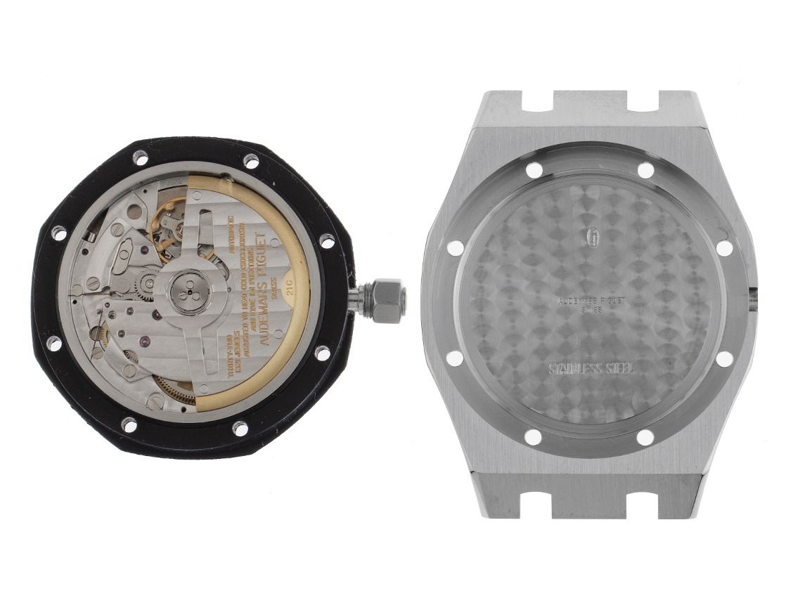 Caja de acero inoxidable satinada y pulida, diámetro de la caja sin corona 36mm, altura de la caja 8,2mm. Bisel de acero inoxidable satinada y pulida, octogonal y atornillado 8 veces. Pulsera de acero inoxidable satinada y pulida, cierre desplegable de seguridad oculto de acero inoxidable con el logo del fabricante. Esfera azul con patrón de gofre, índices de acero inoxidable aplicados y agujas de acero inoxidable. Movimiento automático, calibre de manufactura Audemars Piguet 2325 con 32 piedras preciosas. Indicación de hora, minuto y segundo a través de agujas centrales con parada de segundos para un ajuste preciso de la hora, visualización de la fecha con ajuste rápido a las 3 en punto. Cristal de zafiro resistente a los arañazos. Corona octogonal y atornillada. Fondo de acero inoxidable atornillado 8 veces y grabado. Peso del reloj incluyendo la pulsera 92g, longitud de la pulsera incluyendo la caja 160mm. Número de referencia: 14790ST, número de caja: F64647.11XXX, ID: P2029300001225H-26500, número de artículo: 10000083564. Con control de marcha y reacondicionamiento exterior completo de diciembre de 2025. Caja original de Audemars Piguet con caja exterior y descripción, así como extracto de Watchregister de diciembre de 2025, certificado de The Watch Register / sin entrada (base de datos internacional de relojes perdidos o robados). Inversión con potencial de revalorización, pieza de colección extremadamente rara. Muy buen estado. Tiempo de entrega inmediato.