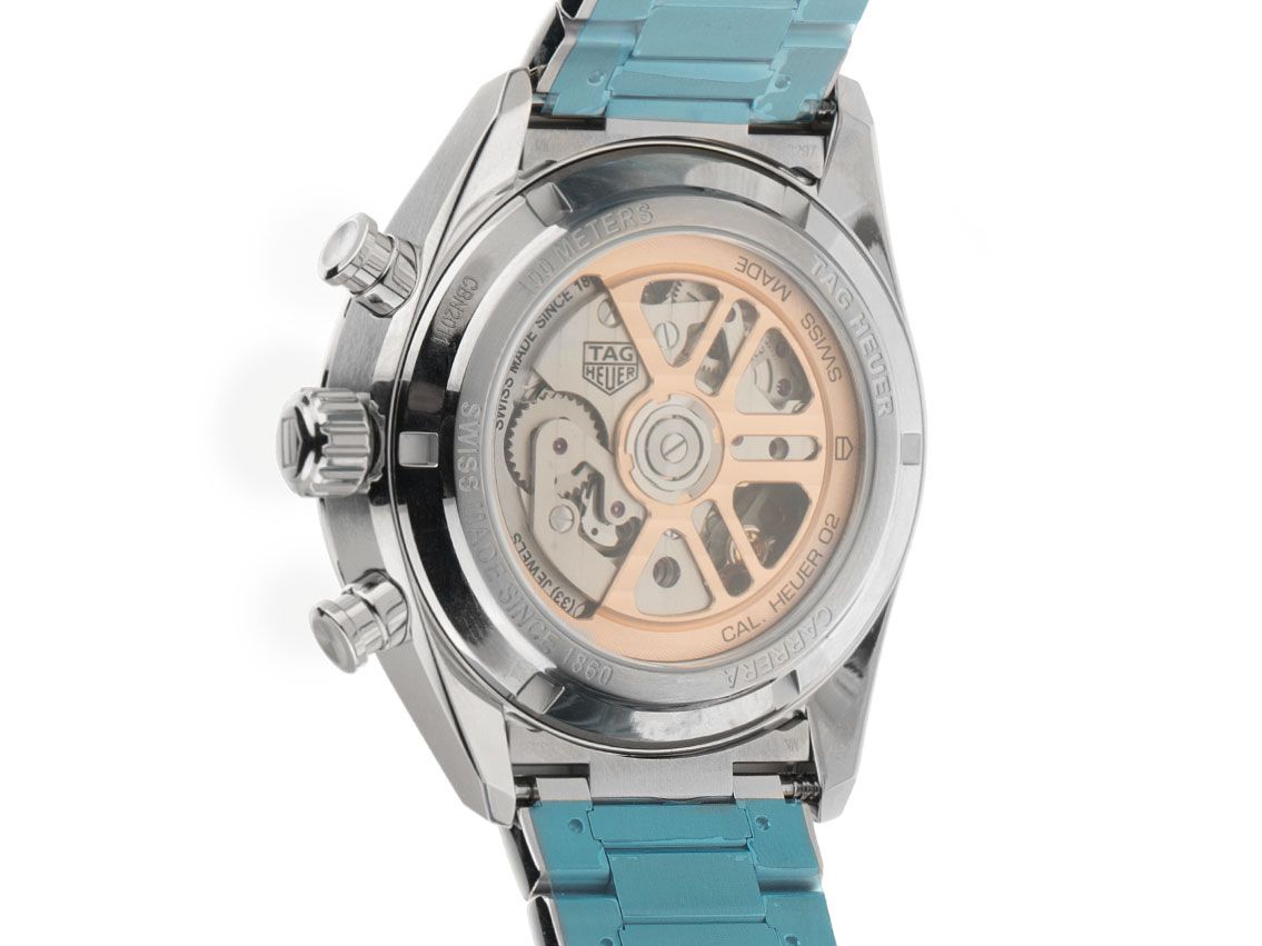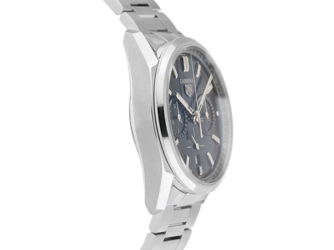 Caja de acero inoxidable pulido y satinado, diámetro de la caja sin corona 42mm, altura de la caja 14,6mm. Bisel de acero inoxidable liso y pulido. Pulsera de acero inoxidable, cierre desplegable de seguridad de acero inoxidable con logo del fabricante. Esfera azul con índices luminosos de acero inoxidable aplicados y agujas luminosas de acero inoxidable. Movimiento automático, cronógrafo, Tag Heuer Calibre 02 con 33 piedras preciosas, reserva de marcha de aproximadamente 80 horas. Indicador de horas y minutos a través de agujas centrales, segundero pequeño con parada de segundos para ajuste preciso de la hora a las 6 en punto, indicador de fecha con ajuste rápido a las 6 en punto. Cristal de zafiro resistente a los arañazos y abombado. Corona con logo del fabricante. Fondo de acero inoxidable atornillado y grabado con ventana de cristal de zafiro. Peso del reloj incluyendo la pulsera 166g, longitud de la pulsera incluyendo la caja 200mm. Resistente al agua hasta 10 ATM. Número de referencia: CBN2011.BA0642, ID: ST610278001225H-6500, número de artículo: 10000083736. Caja original de Tag Heuer con caja exterior y documentos de garantía de 2025, Full Set. Sin usar. Tiempo de entrega inmediato.
