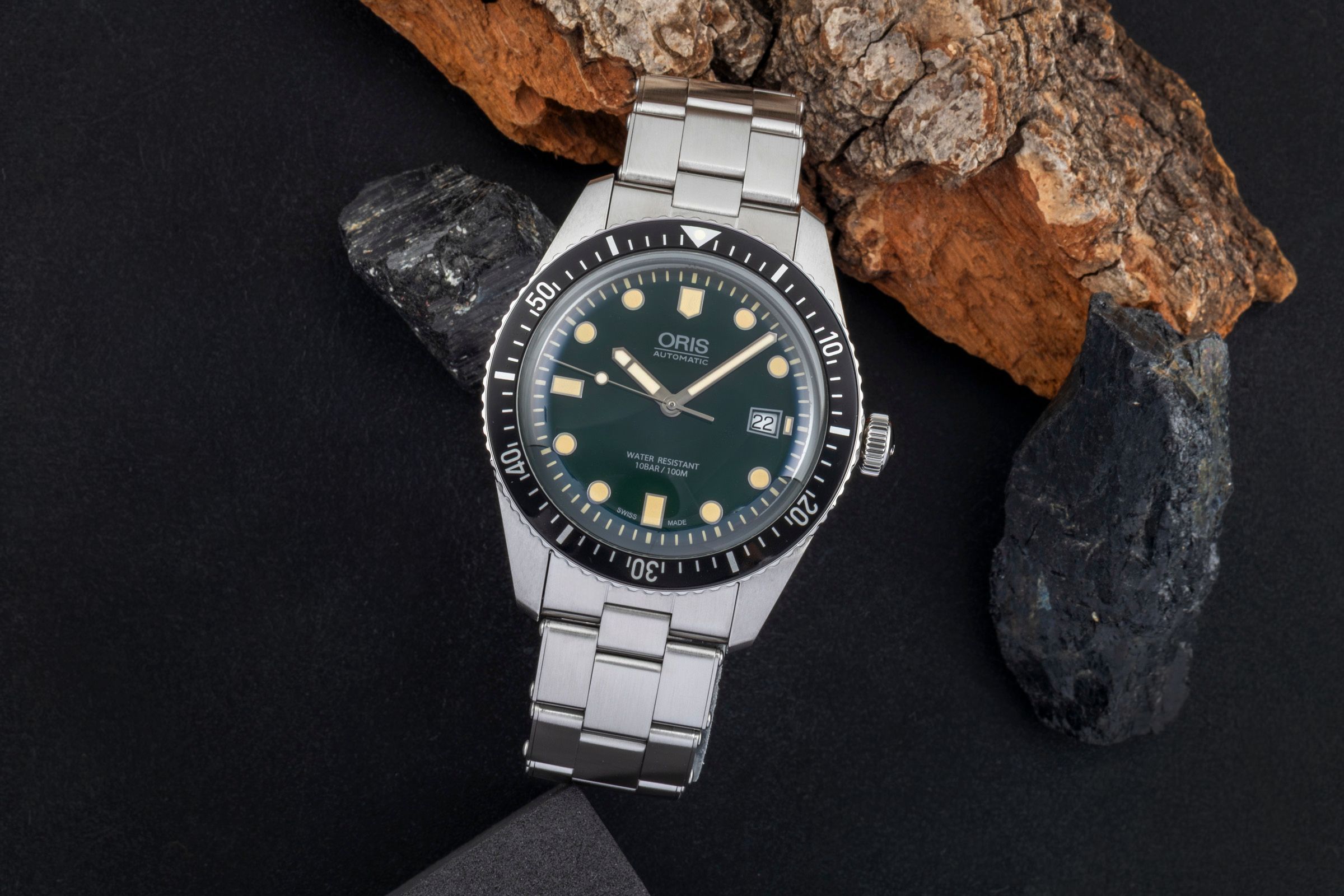 Alternative title: Oris 01 733 7720 4057-07 8 21 18 Divers Sixty-Five 42 Stainless Steel / Green / Bracelet; Oris Divers Sixty Five Stahl Automatik Ref. 01 733 7720 4057-07 8 21 18 Box [2506436]