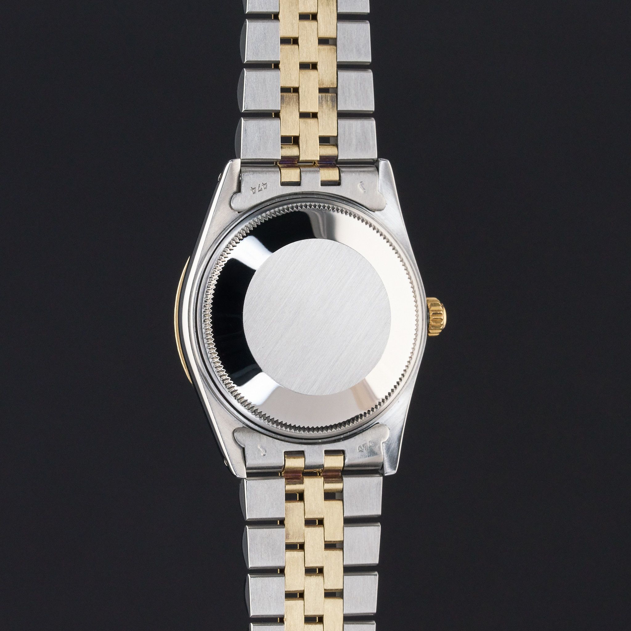 This Rolex Oyster Perpetual Date 15053 features a Blue dial and is crafted from 18K yellow gold and stainless steel, with a production year of 1982.Case No: 718XXXX