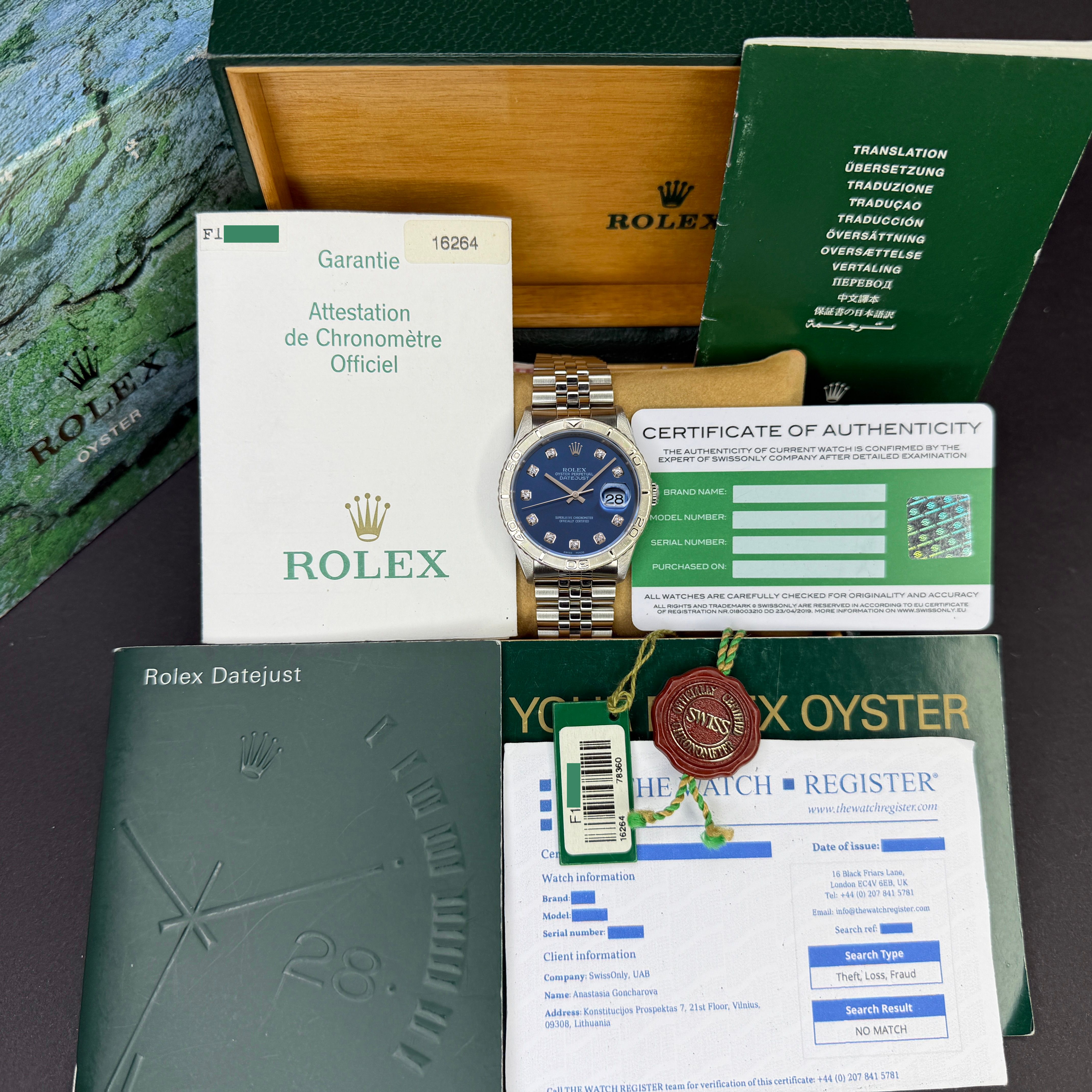 Rolex Datejust Turn-O-Graph Rolex Datejust Turn-O-Graph, 16264, 36mm, 2003, Steel, Blue Diamond dial, Fullset, 1y warranty