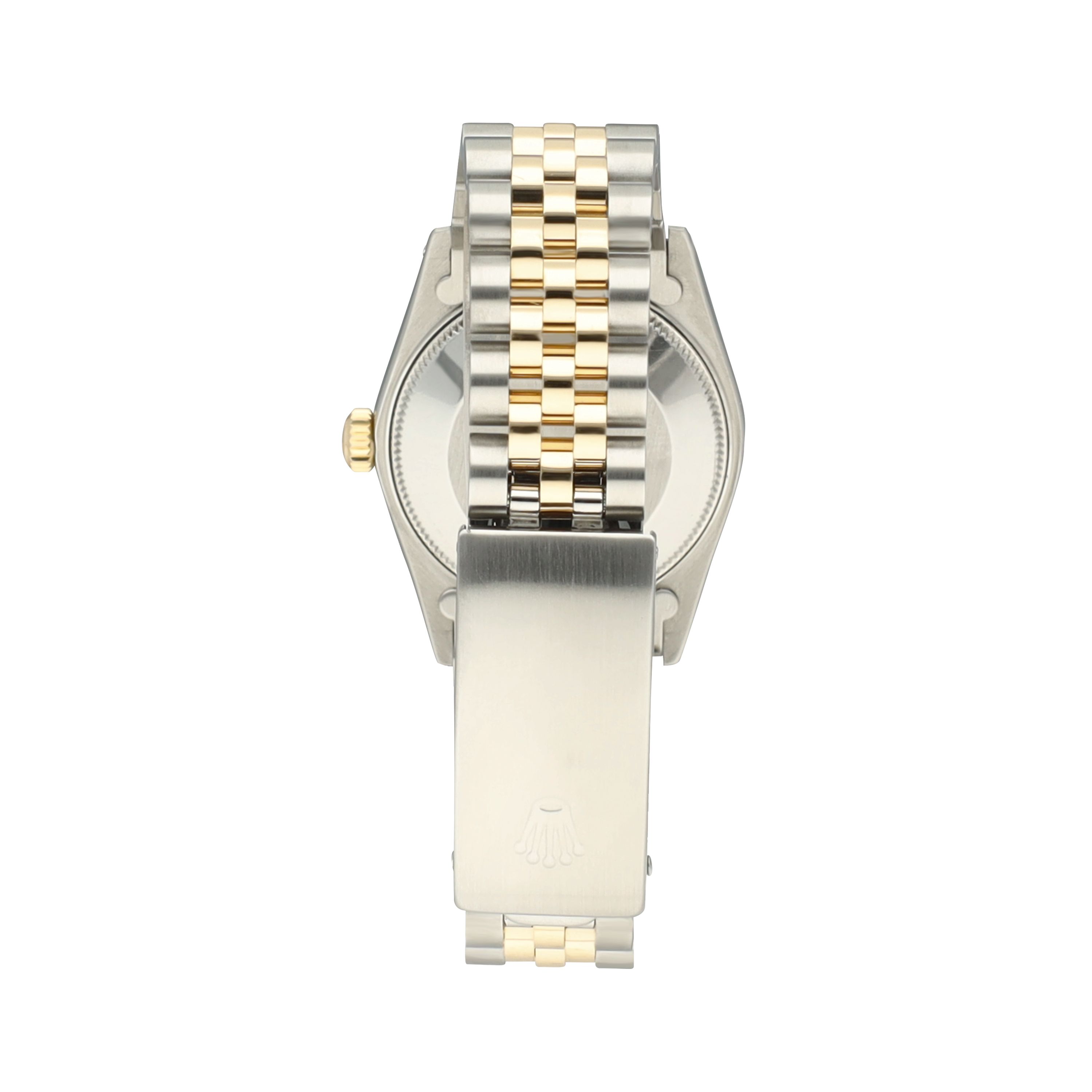 En su interior, este Datejust está impulsado por el calibre automático Rolex 2135, que ofrece una precisión certificada como cronómetro, una función de fecha rápida y una reserva de marcha aproximada de 42 horas.