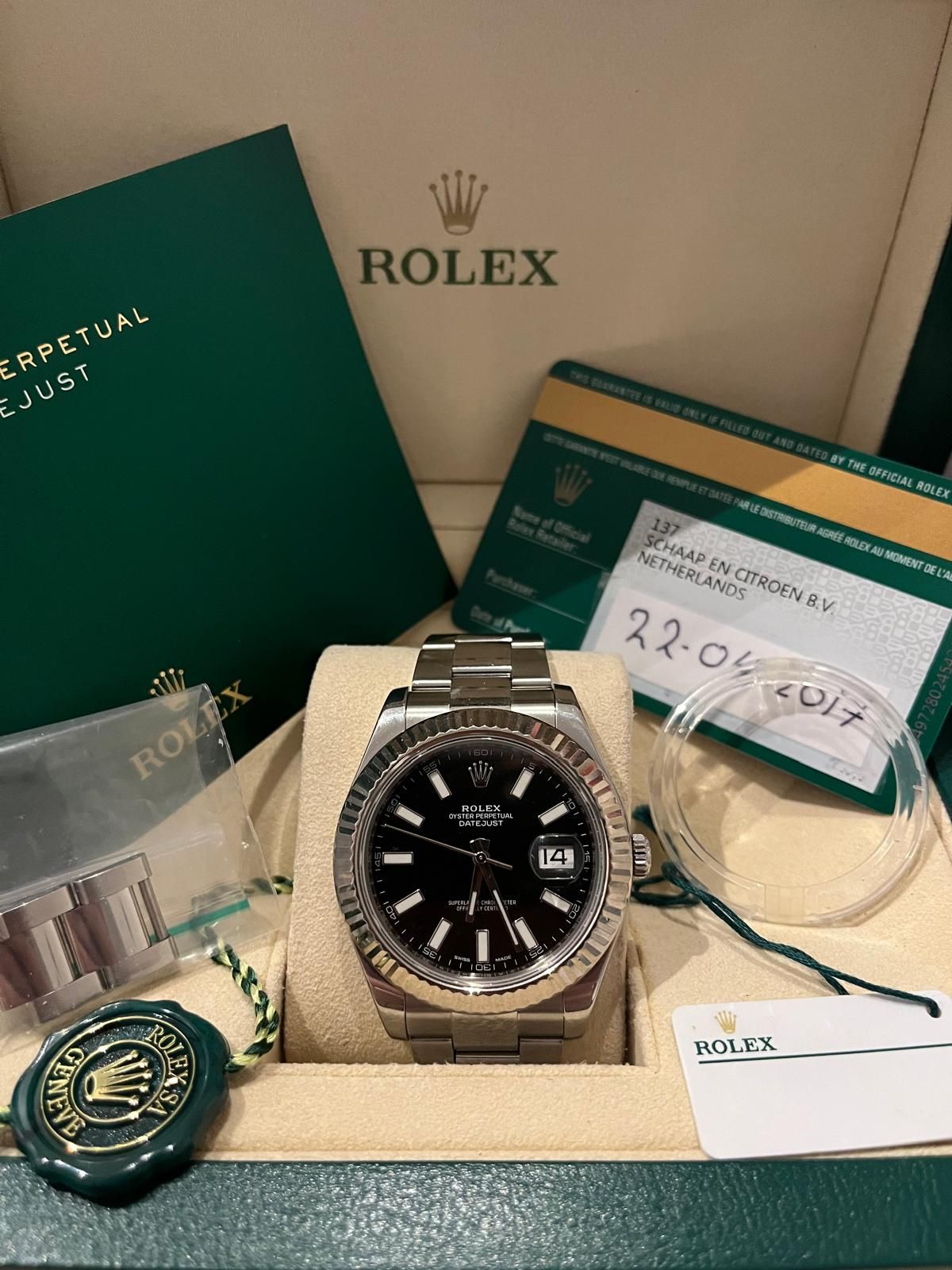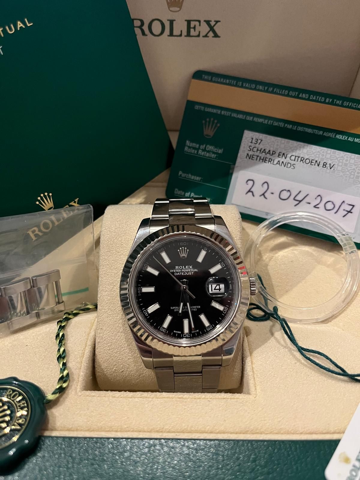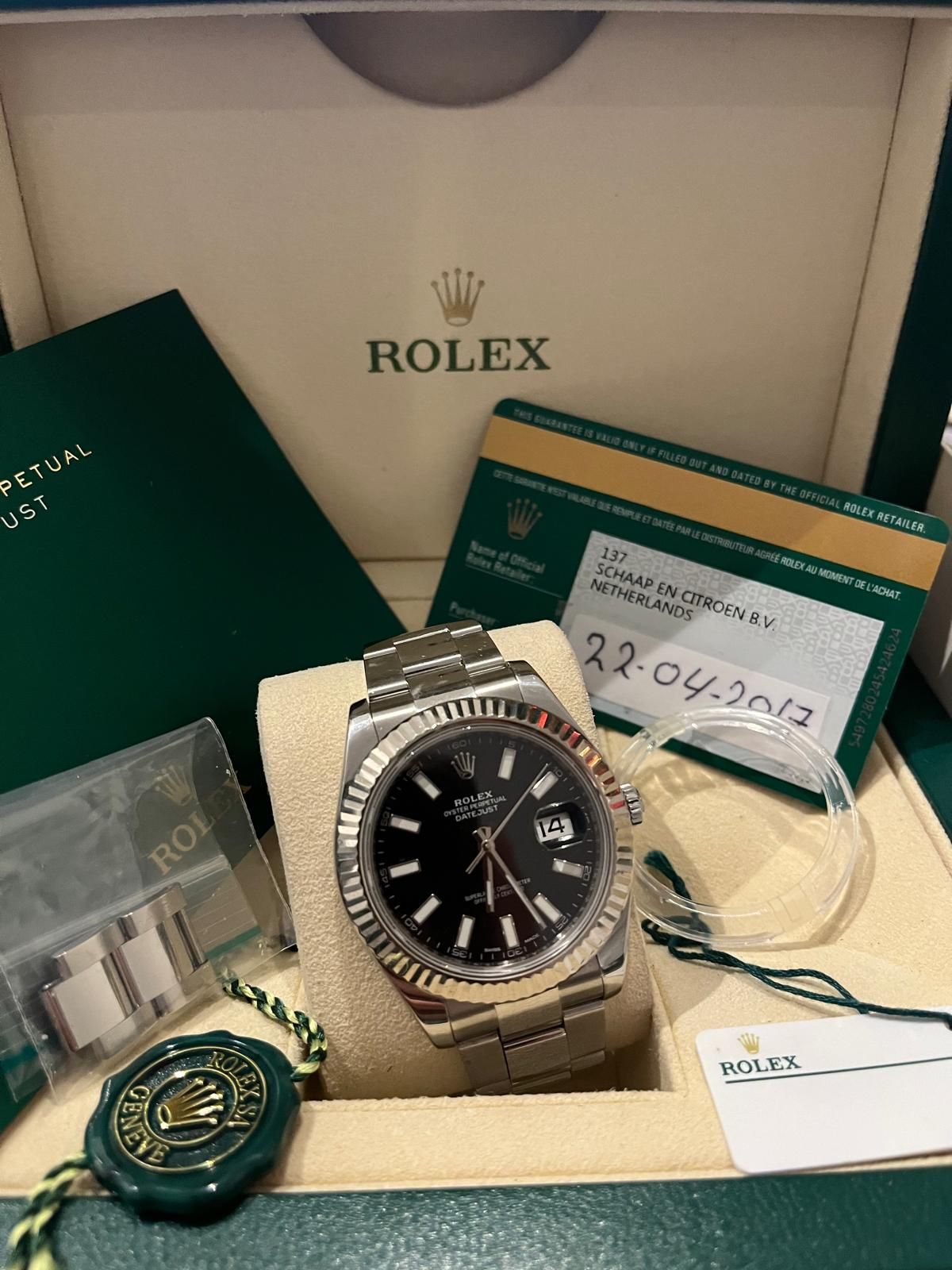 Este ejemplar es de 2017 y se ofrece como un conjunto completo, que incluye la caja original de Rolex, la tarjeta de garantía, los folletos y todos los eslabones completos. Una oportunidad fantástica para adquirir un Datejust muy deseado en excelente estado y completo.