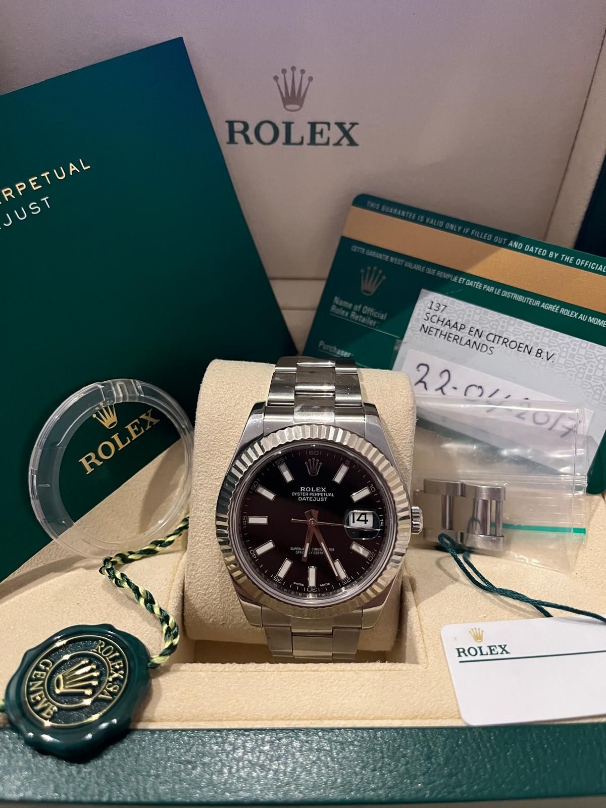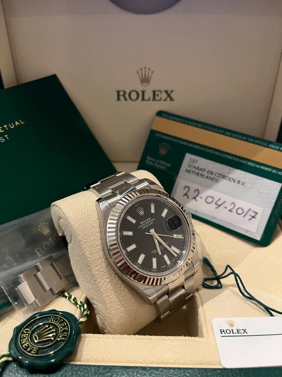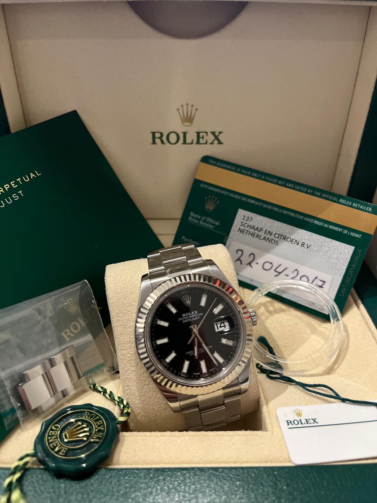 Este ejemplar es de 2017 y se ofrece como un conjunto completo, que incluye la caja original de Rolex, la tarjeta de garantía, los folletos y todos los eslabones completos. Una oportunidad fantástica para adquirir un Datejust muy deseado en excelente estado y completo.