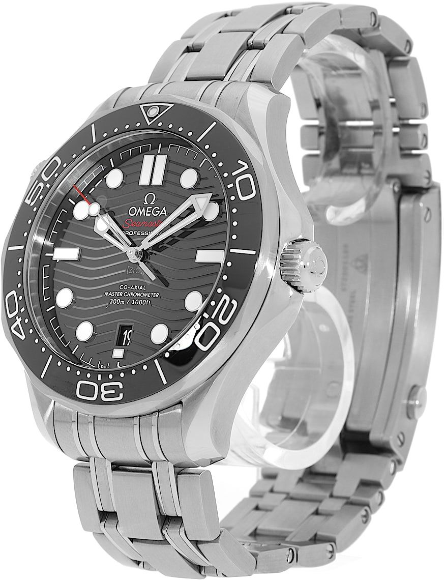 Omega Seamaster Diver 300M Co-Axial Master Chronometer, Reference: 210.30.42.20.01.001, Gender: Male, Size: 42mm, Dial color: Black, Strap material: Stainless Steel, Movement: Automatic, Year: 2022, Condition: Previously worn, minor to no signs of usage. The movement is flawless and the case has been cleaned. watch tested ensure full functionality. An inspection by our certified watchmakers guarantees its authenticity., Documents: Original papers, CHRONEXT Certificate