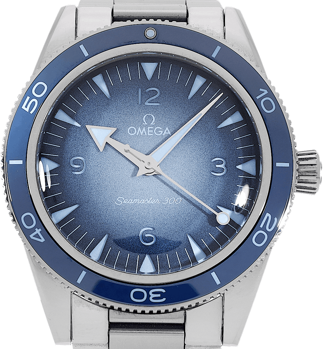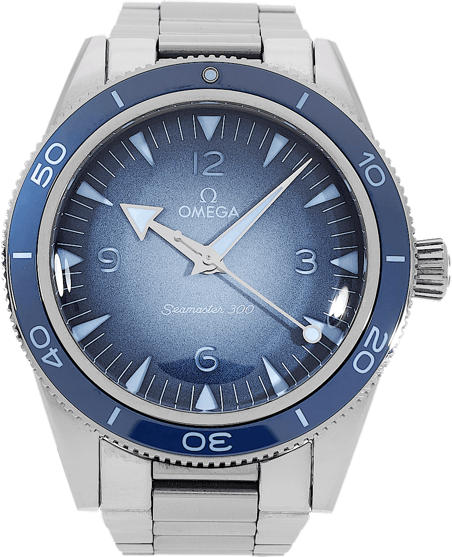 Omega Seamaster 300 Summer Blue, Reference: 234.30.41.21.03.002, Gender: Male, Size: 41mm, Dial color: Strap material: Stainless Steel, Movement: Automatic, Year: 2024, Condition: Previously worn with some signs of usage. The movement is flawless and the case has been cleaned. watch tested to ensure full functionality. An inspection by our certified watchmakers guarantees its authenticity., Documents: Original papers, CHRONEXT Certificate