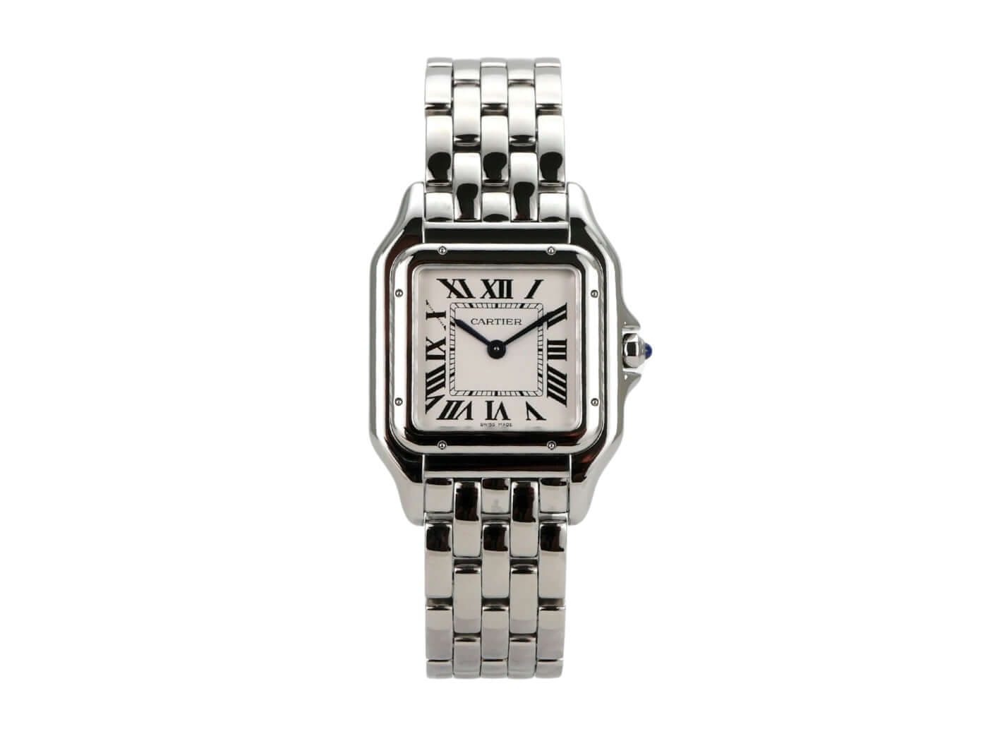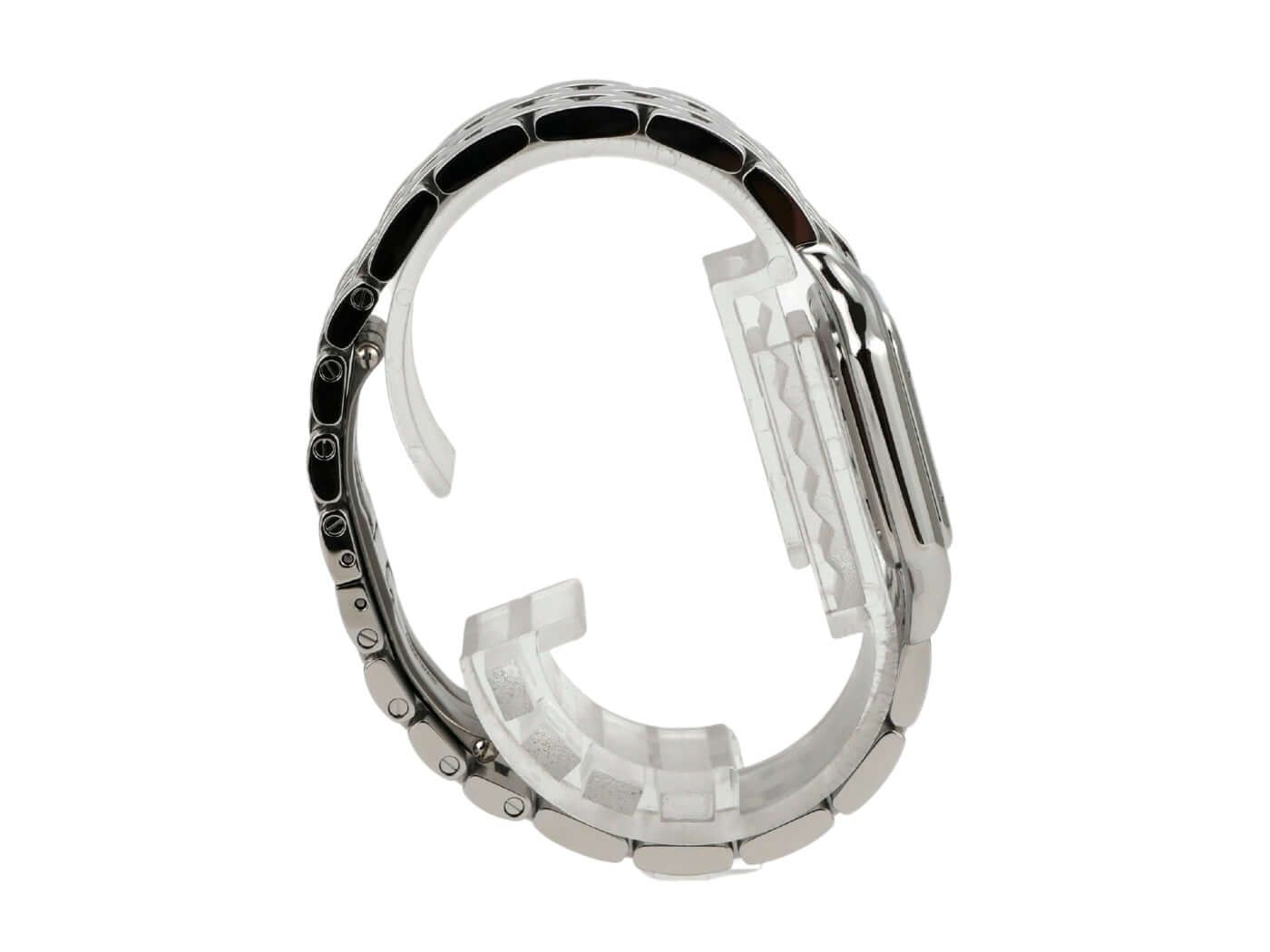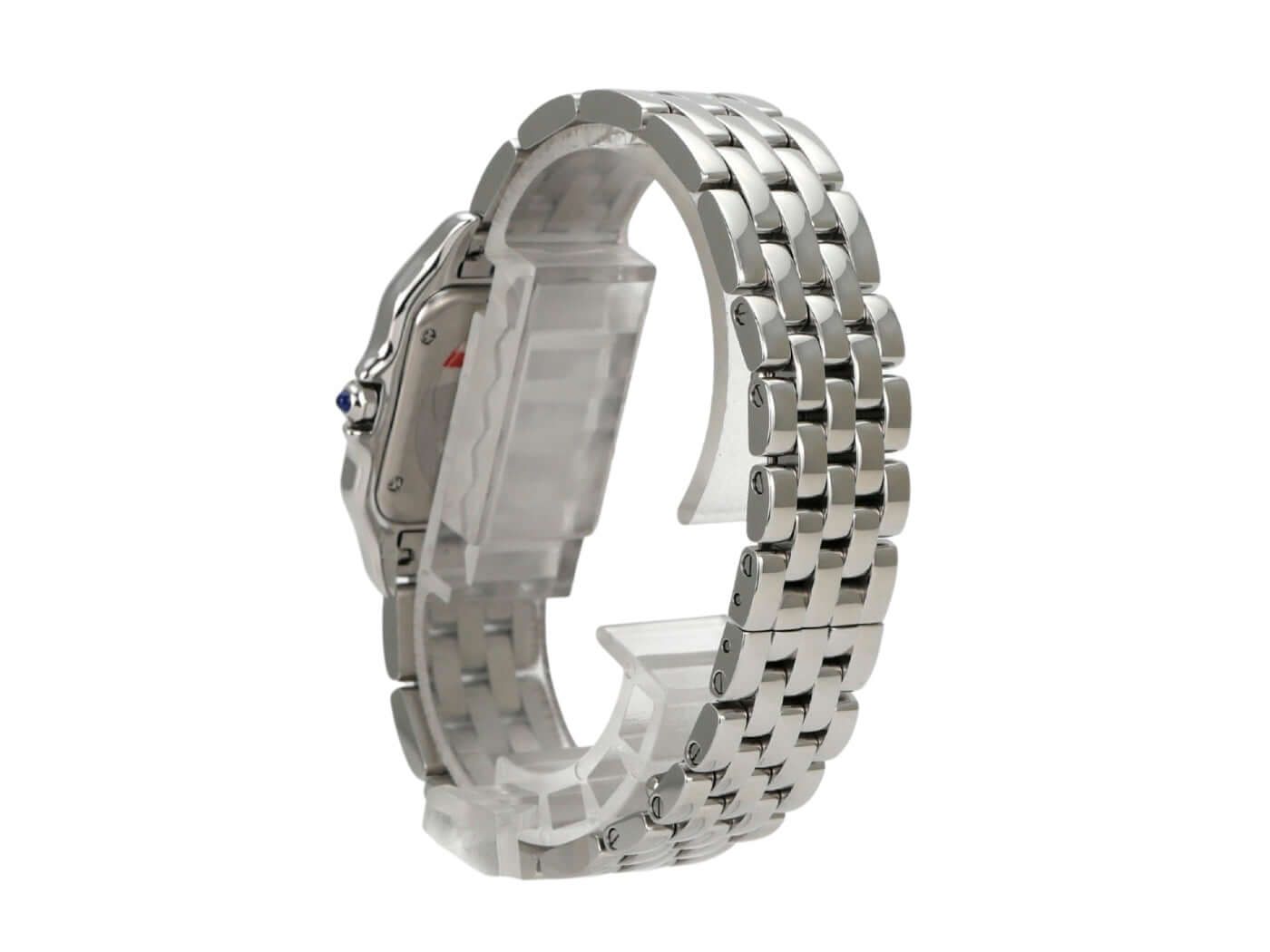 Cartier Panthère de Cartier medium model Ref. WSPN0015Polished stainless steel case, case diameter 27 x 37 mm, polished stainless steel bezel, stainless steel bracelet with folding clasp, silver-colored dial with blued steel hands, Roman numerals, quartz movement, sapphire crystal, screwed stainless steel case back, water-resistant up to 3 bar.