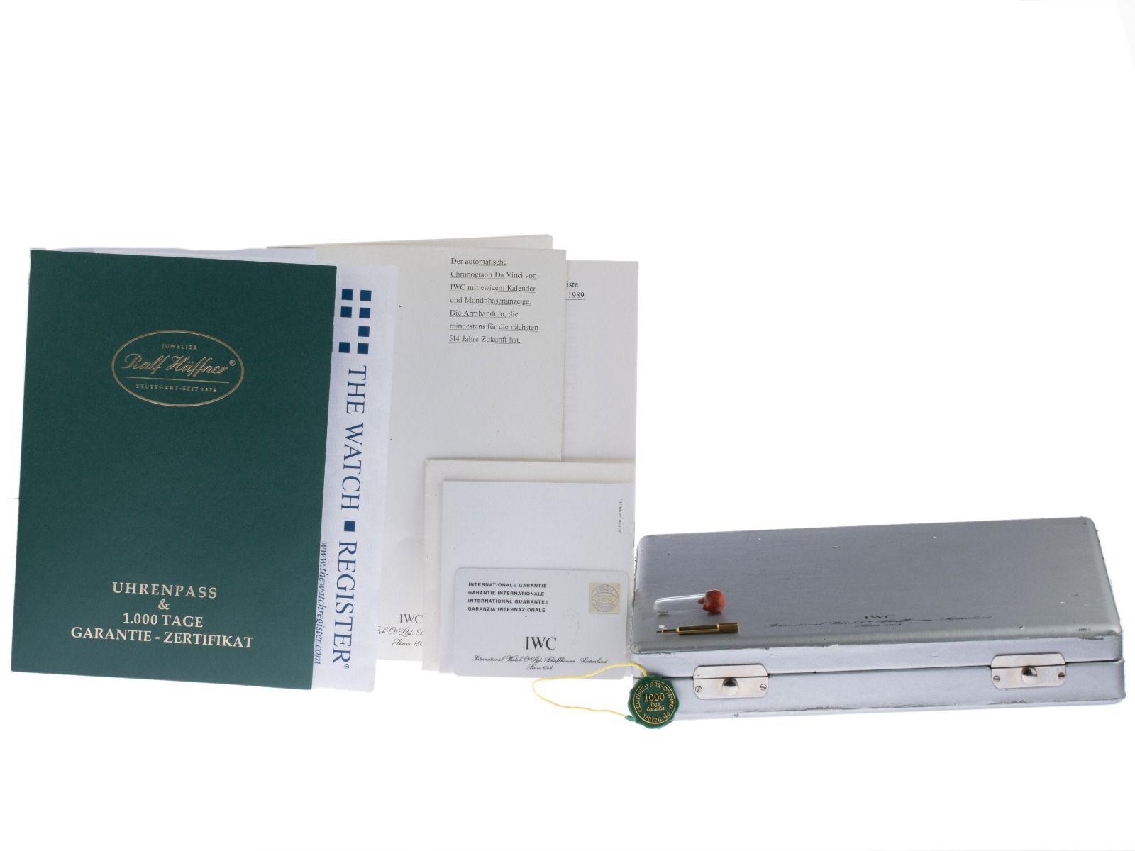 Inklusive certified pre owned Siegel / Uhrenpass mit einem Farbbild, der genauen Beschreibung sowie dem Wiederbeschaffungswert der Uhr über 17900,-€ und 1000 Tage Garantie ab Kaufdatum.