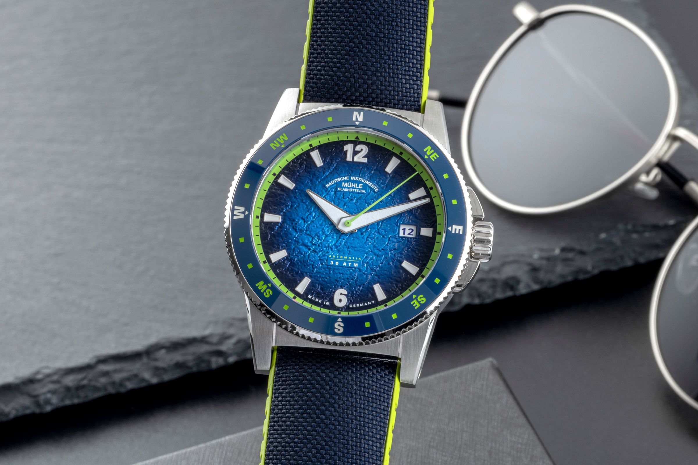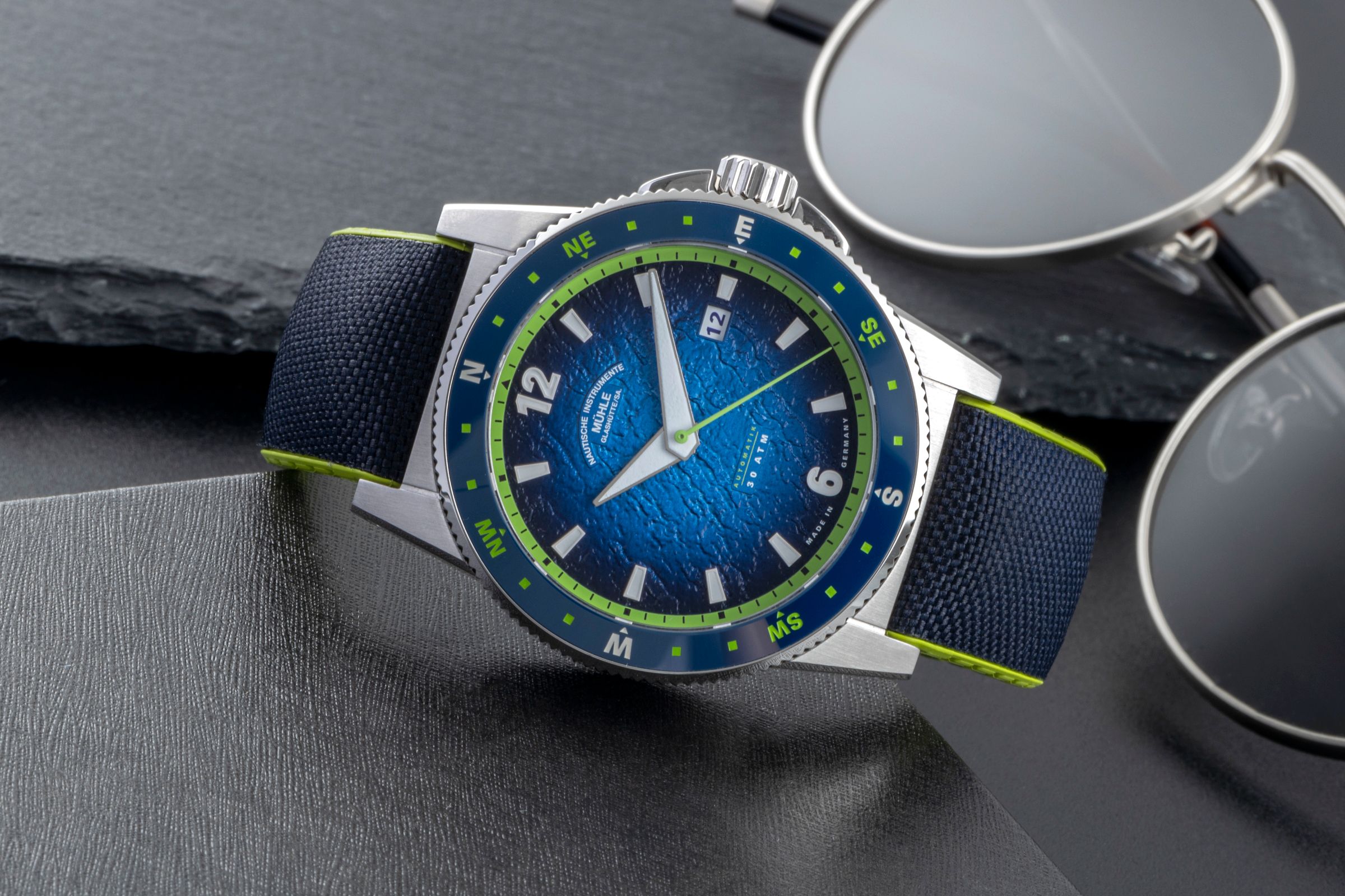 Alternative title: Mühle Glashütte M1-52-22-CK Sportivo Compass Automatic Blue; Mühle Sportivo Compass Datum Automatik Herrenuhr Ref. M1-52-22-CK B&P 2025 [2507436]