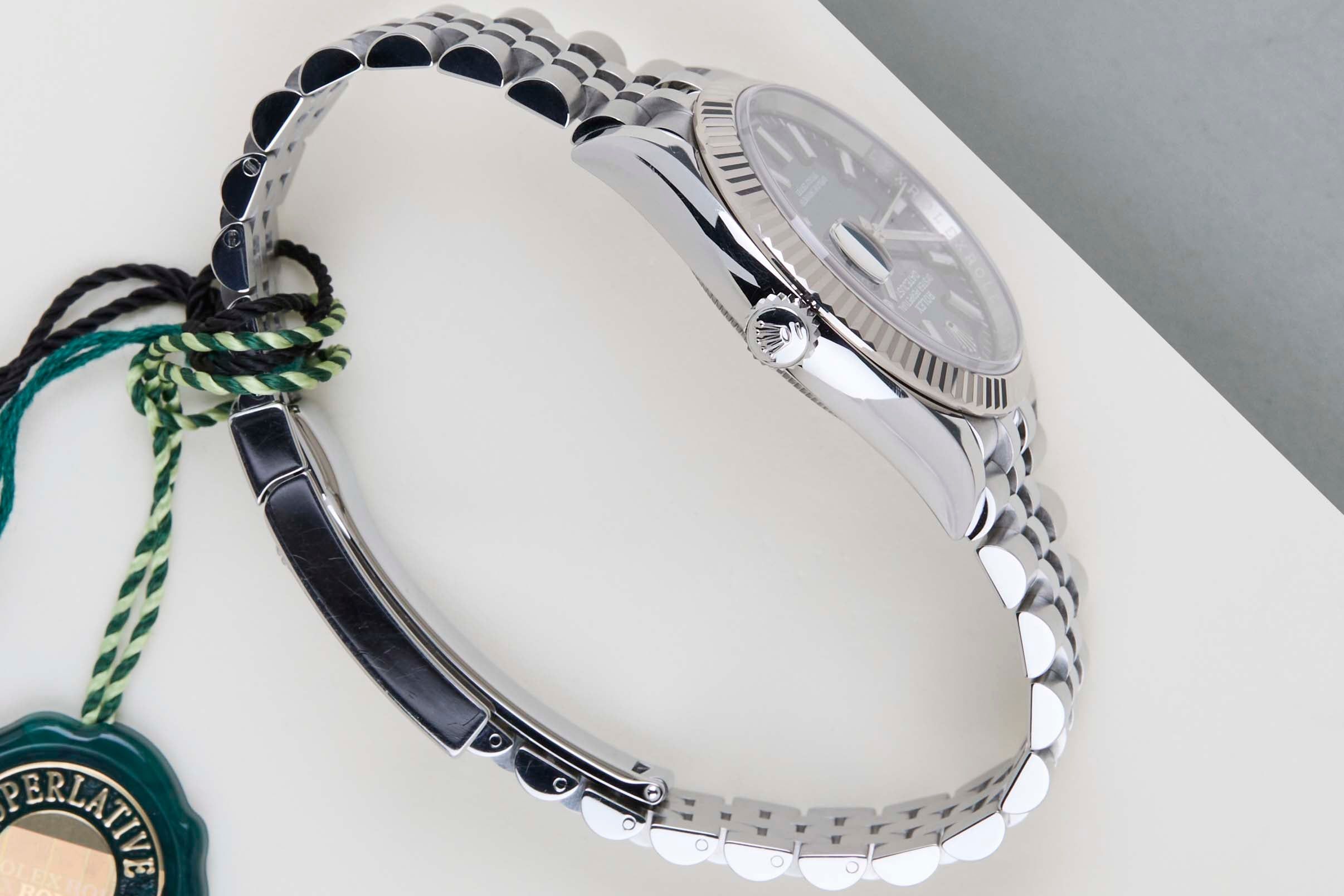 Rolex presentó el Datejust original en 1945 para celebrar el 40 aniversario de la compañía. Debido a los diversos tamaños y materiales de la caja, el Datejust ha quedado grabado en la historia de Rolex y sigue siendo increíblemente popular durante casi 80 años. Este Datejust está hecho de una combinación de oro blanco de 18k y acero inoxidable, y está equipado con un brazalete Jubilee que cuenta con el Easylink. Esta extensión permite al usuario alargar o acortar el brazalete en 5 milímetros, mejorando la comodidad y usabilidad del reloj.