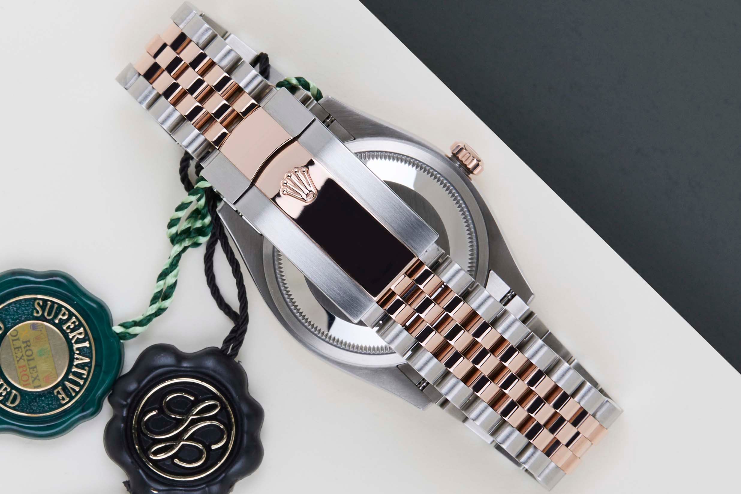 Full Set | International Rolex Warranty Until July 2026Rolex introduced the original Datejust in 1945 to celebrate the company's 40th anniversary. Due to the various case sizes and materials, the Datejust has been ingrained in Rolex's history and remains incredibly popular for 75 years.This Rolex Datejust 'Wimbledon Dial - Jubilee' was sold for the first time in July 2021.This Datejust is made of a combination of 18k Everose Gold and stainless steel and is fitted with a Jubilee bracelet which is equipped with the Easylink. This extension, allows the wearer to either extend or shorten the bracelet by 5 millimeters, improving the wearability and usability of the watch. This Rolex Datejust 36 is equipped the Beautiful 'Wimbledon Dial'.This Rolex Datejust 36 is in Mint condition and comes with the original Rolex Warranty Card and box. The watch still has worldwide Rolex Warranty until July 2026. Furthermore, the watch comes with one year of Steiner Warranty.