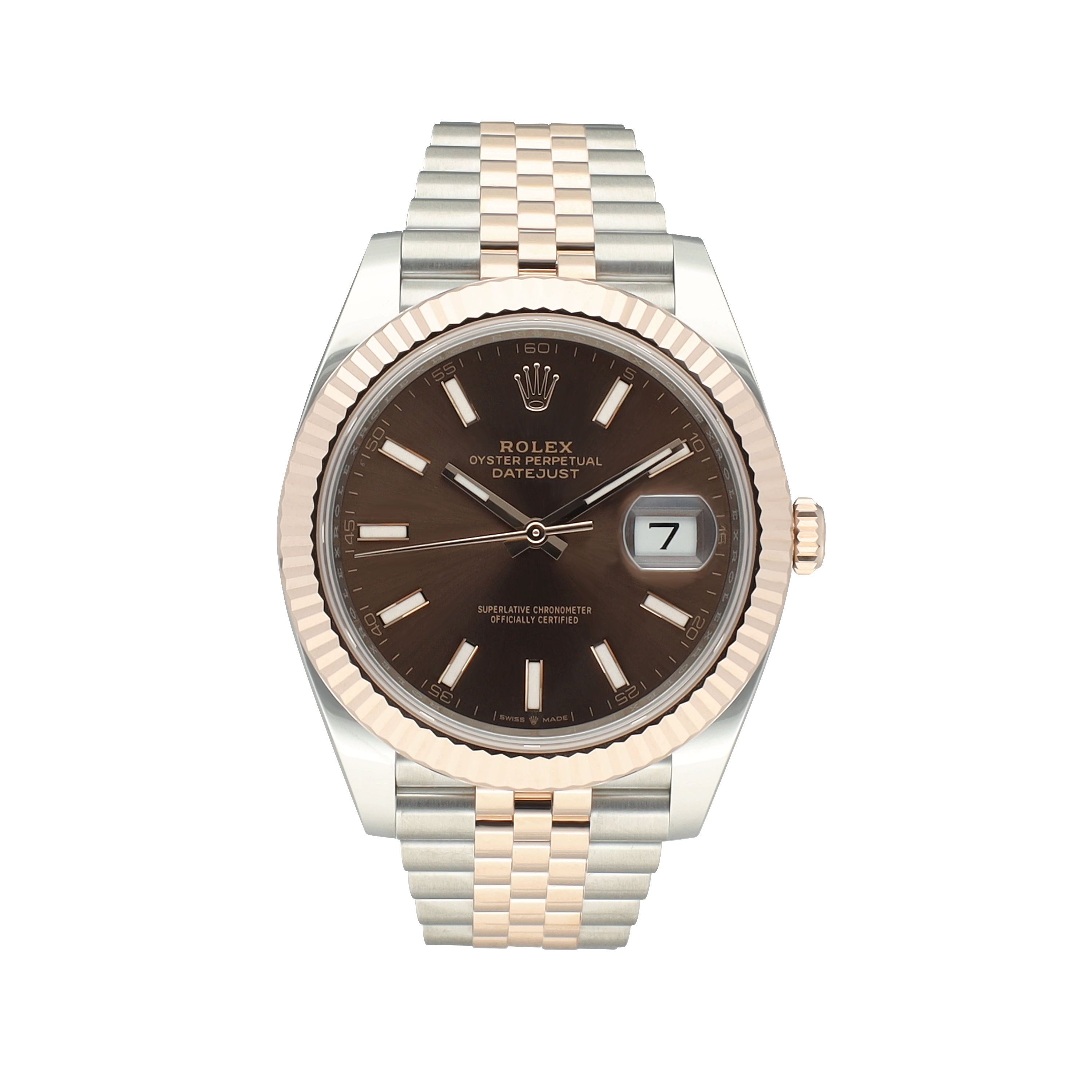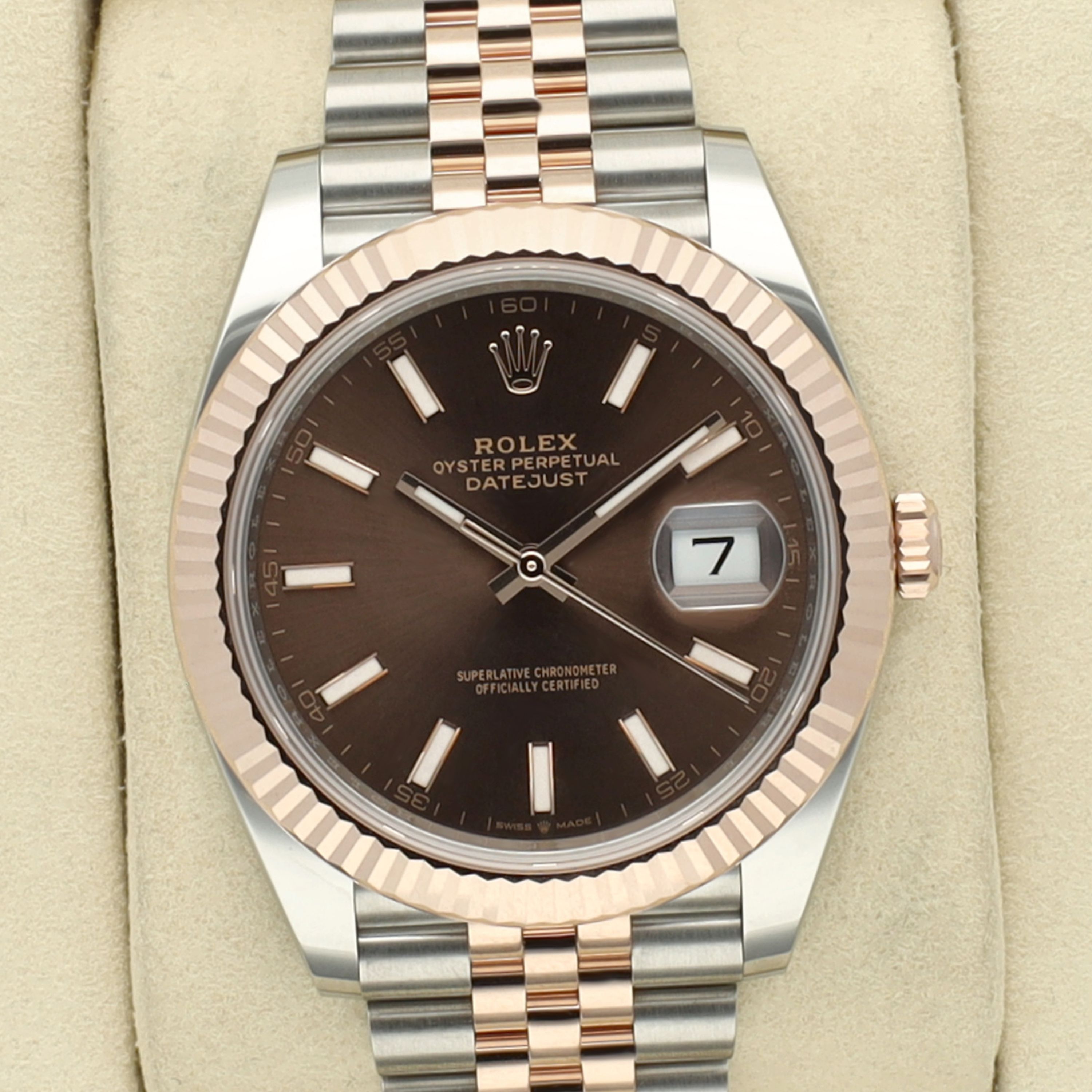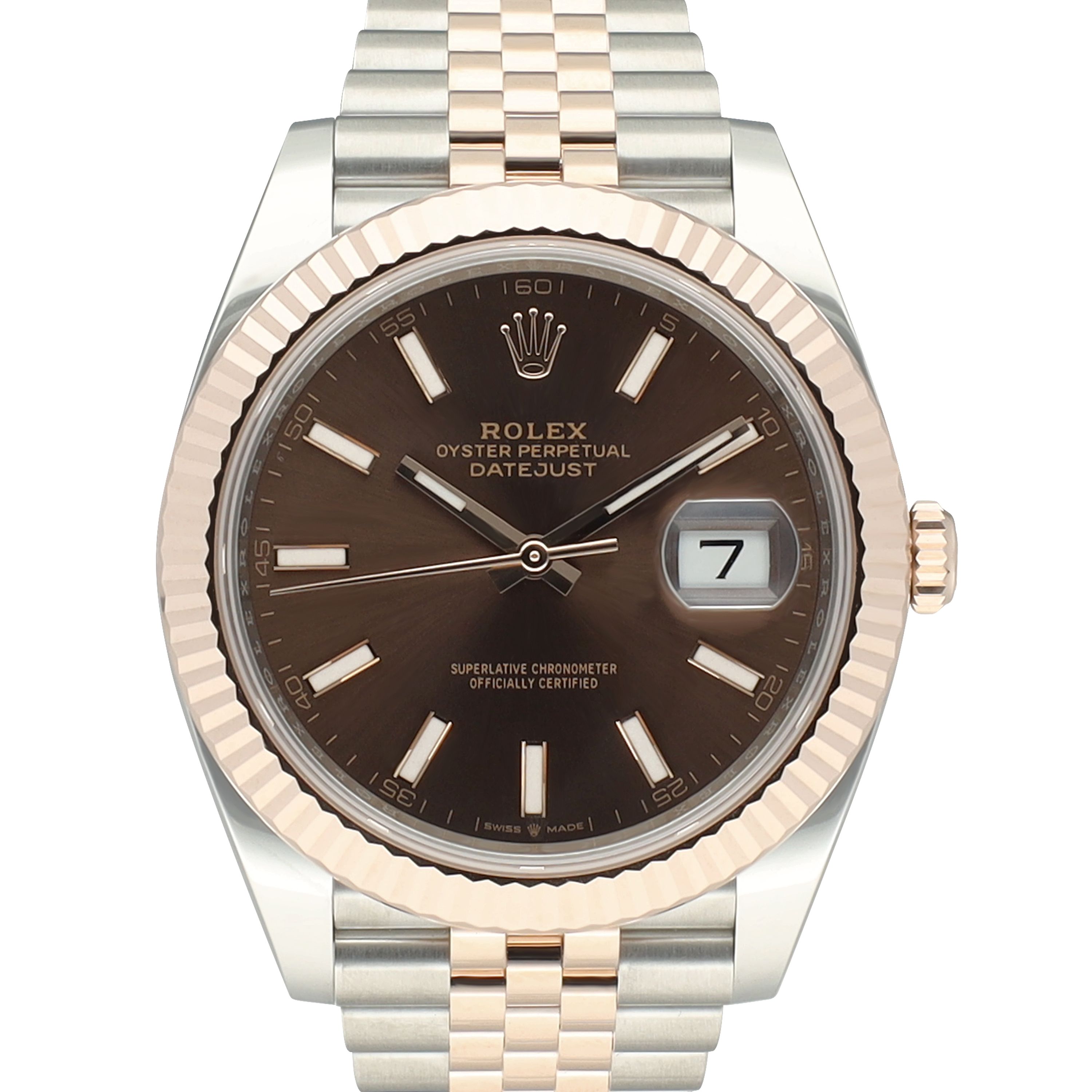 This highly sought-after configuration features a chocolate brown dial, known for its warm, luxurious tone and refined elegance, offering a timeless yet contemporary appearance suitable for any occasion.