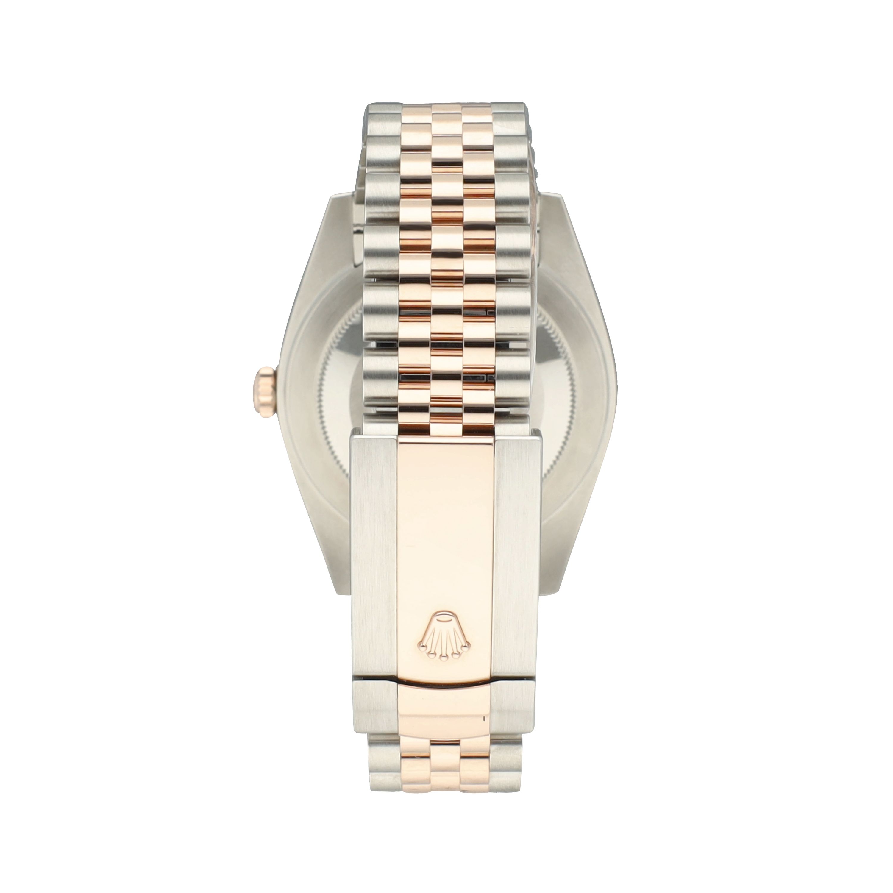 El reloj está fabricado en una caja de acero Oystersteel de 41 mm y oro Everose de 18 quilates, complementado por el icónico bisel estriado de oro Everose, y equipado con la elegante pulsera Jubilee, reconocida por su comodidad superior y estética inconfundible de Rolex.