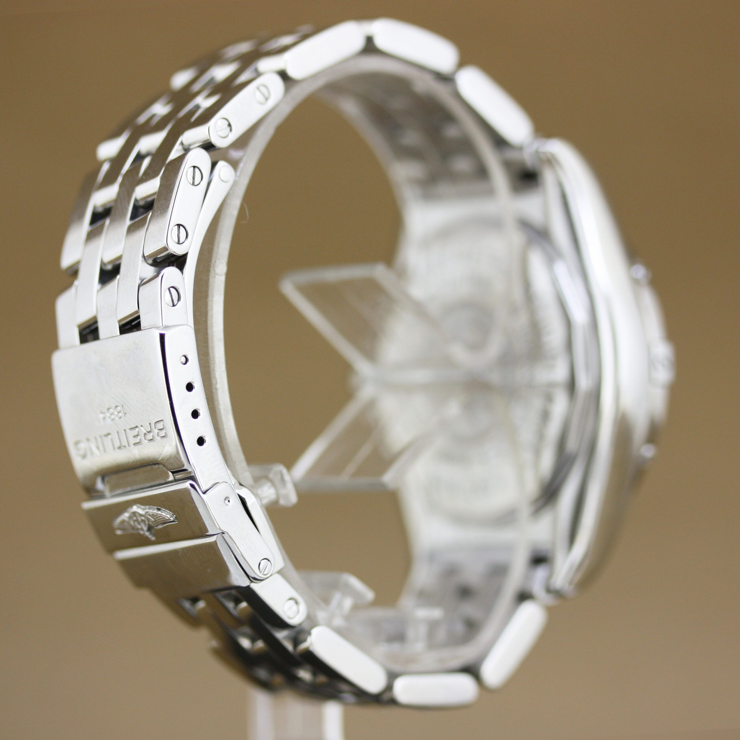 a Breitling Galactic Cockpit 41, reference A49350, year 2012, in very good condition.Featuring a fully stainless-steel case, a bezel set with natural diamonds, and a rhodium (grey/silver) dial.Powered by an automatic movement with date function, known for reliability and precision.Finished on a stainless-steel Pilot bracelet with folding clasp.