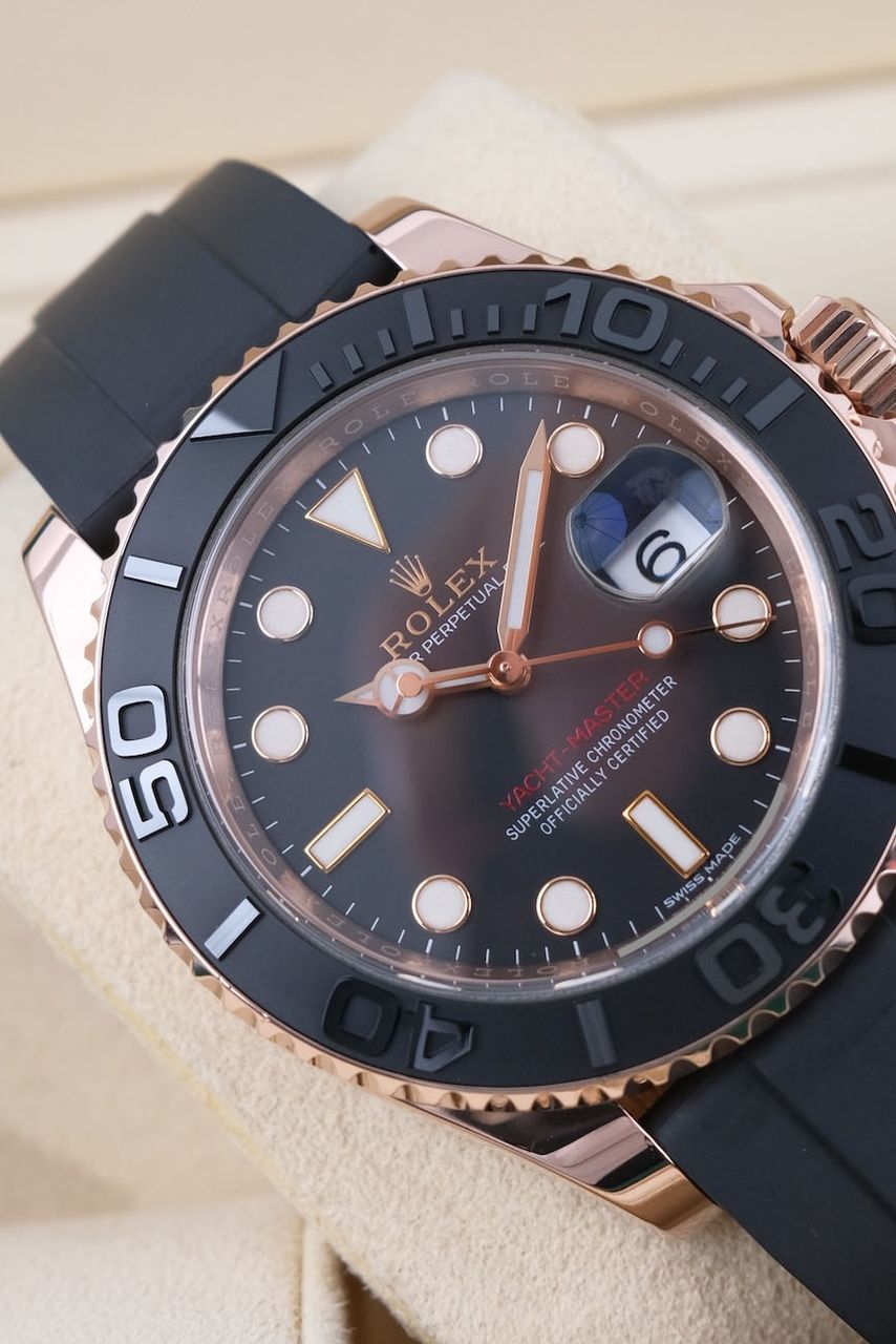 **Watch Description**Ready for your new dream watch? Perhaps this beautiful Rolex Yacht-Master 40 made of Pink gold will soon be on your wrist. Whether vintage or modern - with over 200 watches in stock, we always have your new luxury watch available for you immediately - whether you are a first-time buyer or your watch collection needs a new addition.